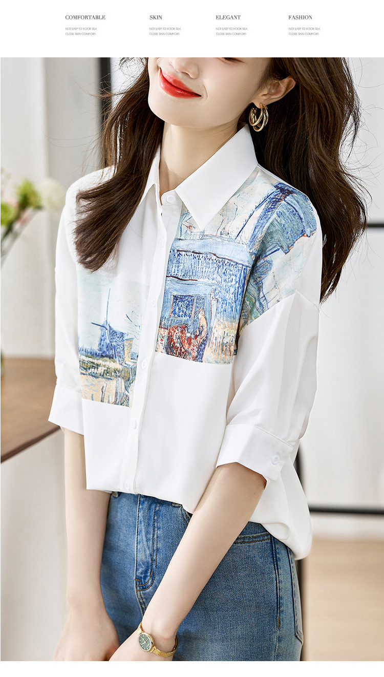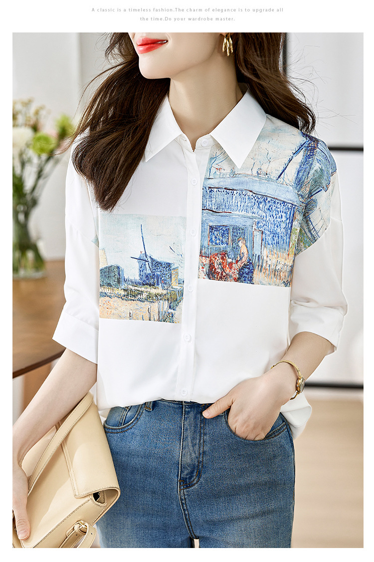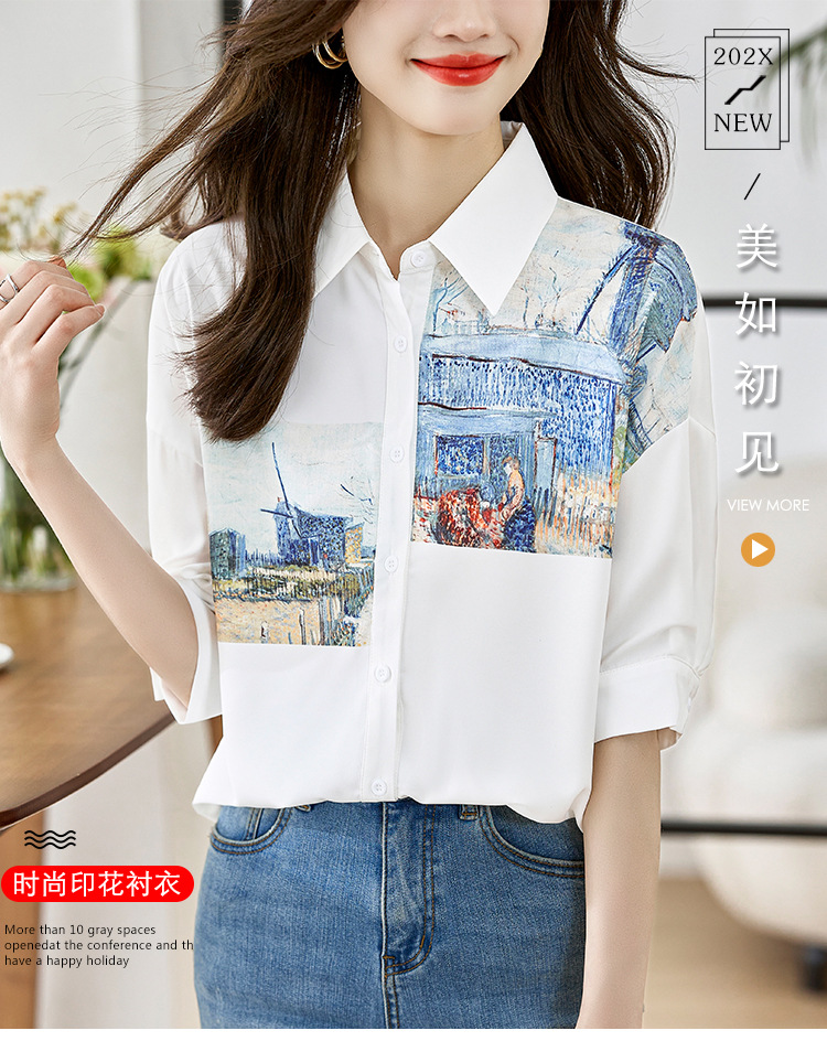 【油画印花白色衬衫】文森特·梵高联名定位印花衬衫