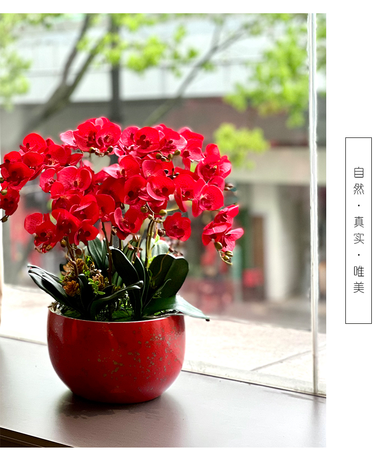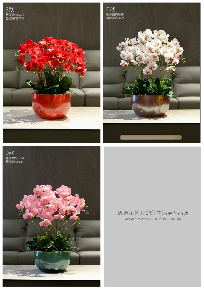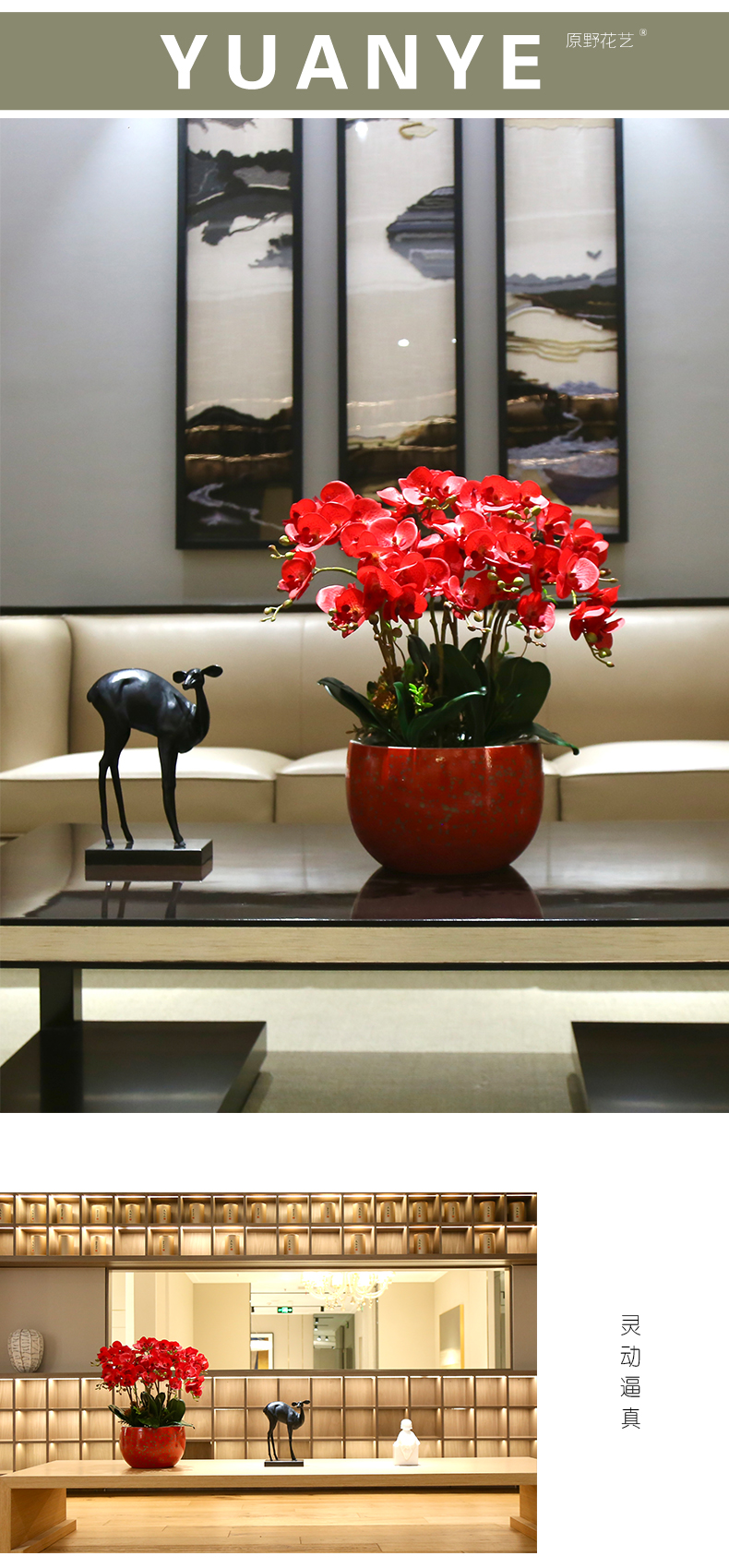 蝴蝶兰仿真花大型高档兰花手感保湿假花盆景客厅大堂酒店装饰摆件