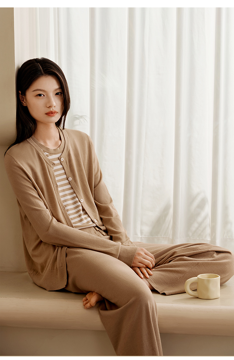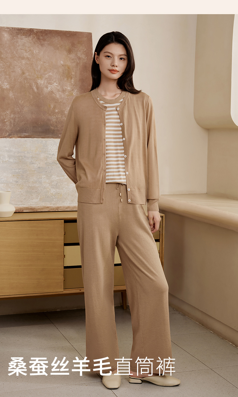 金三塔真丝桑蚕丝羊毛混纺直筒长裤时尚休闲家居裤 YZFFC903