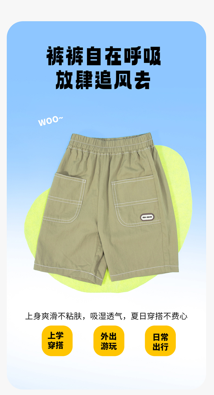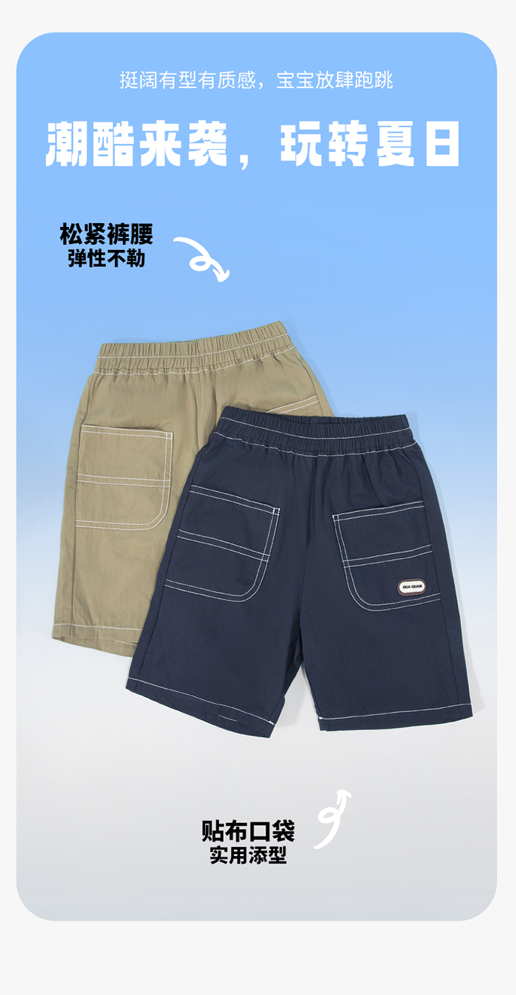 贝贝怡男童五分裤夏季薄款2024新款儿童短裤男孩休闲运动宽松裤子ZB2DK023