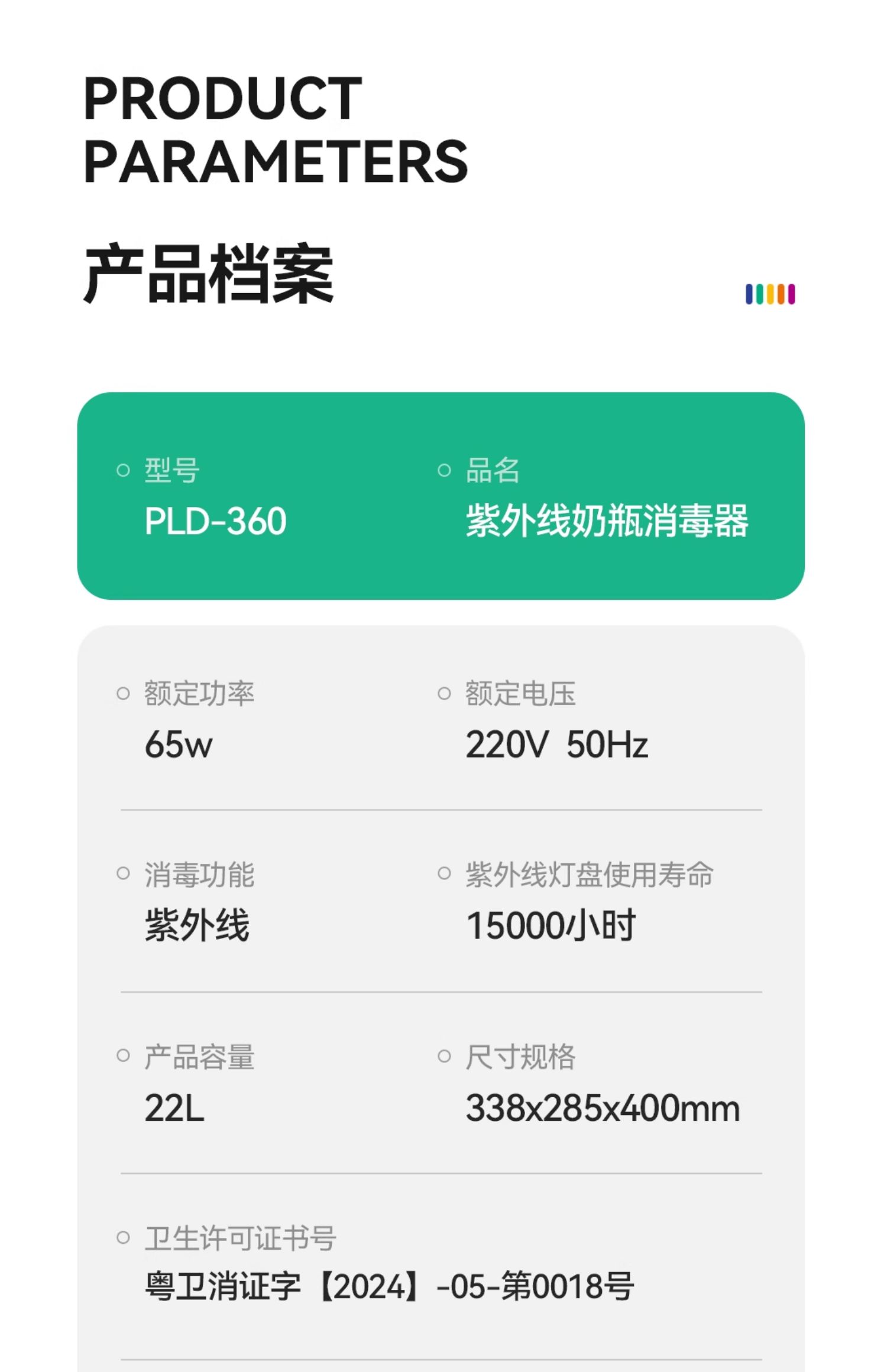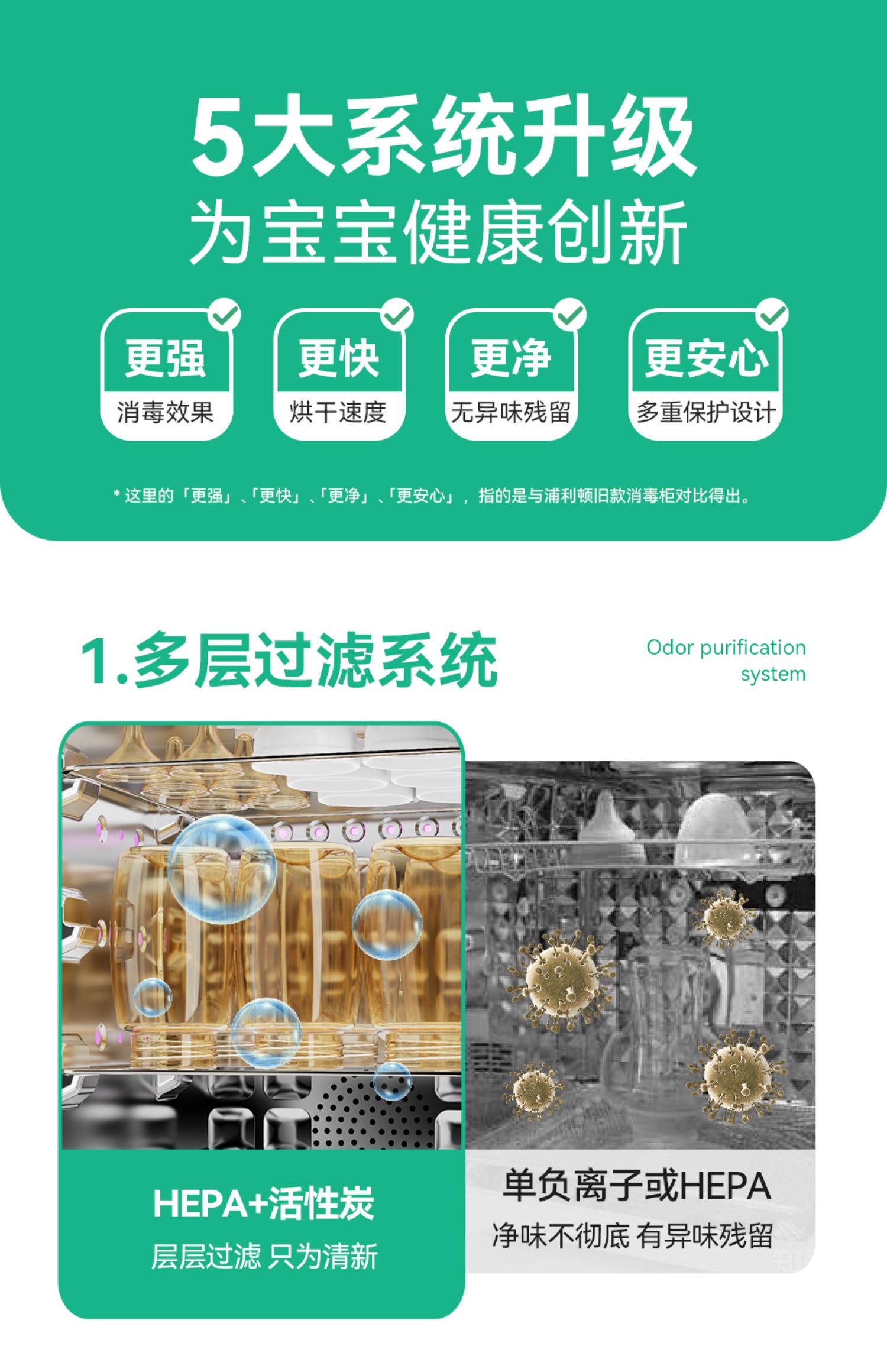 浦利顿婴儿奶瓶消毒柜带烘干二合一体机PLD-360