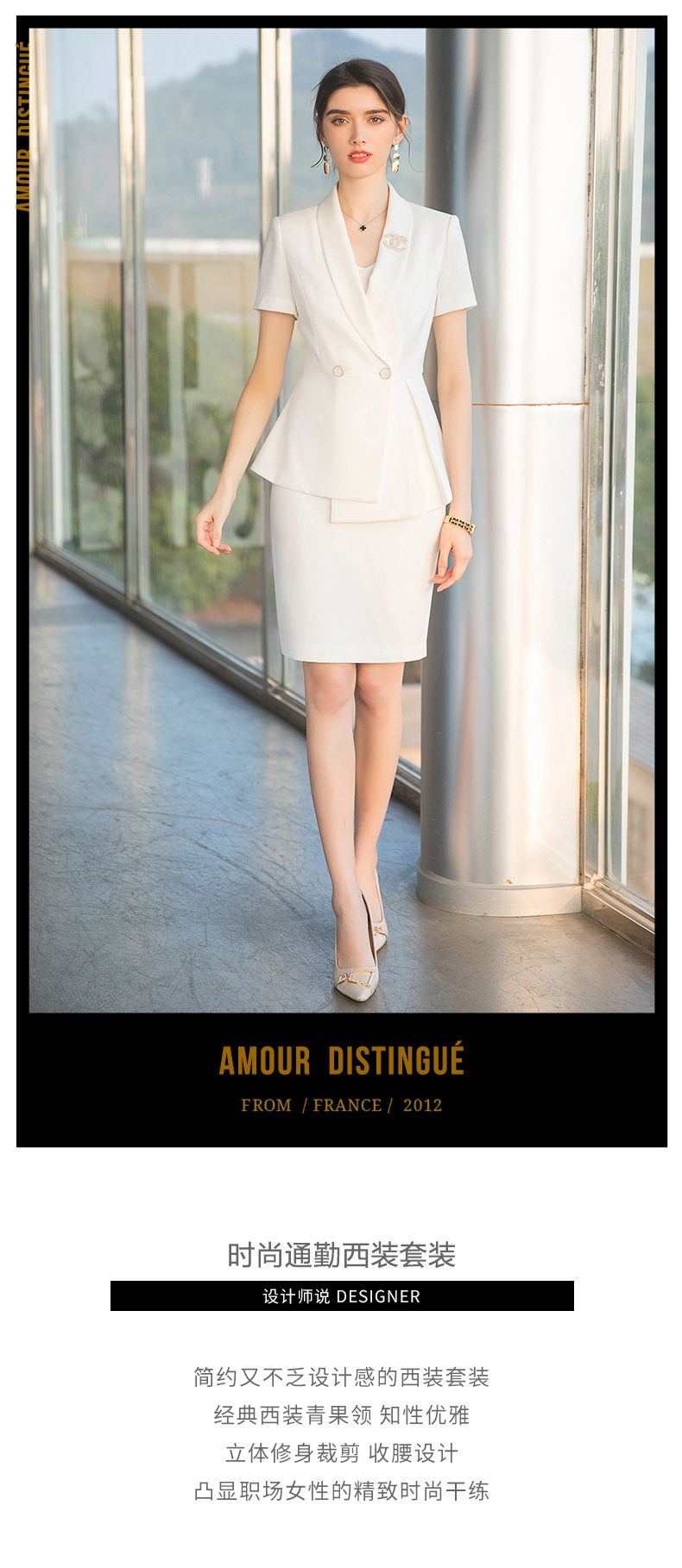 AD收腰显瘦短袖西装套装女主持人正装高级感职业装气质女神范工装