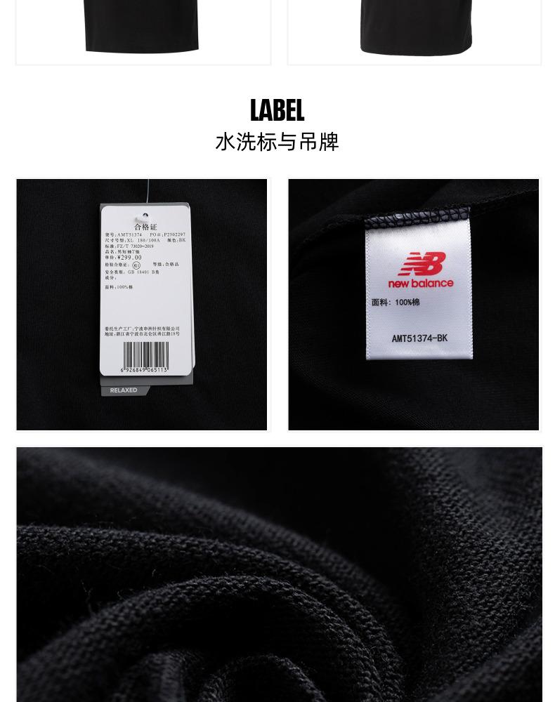 New Balance纽巴伦 男士黑色全棉短袖T恤