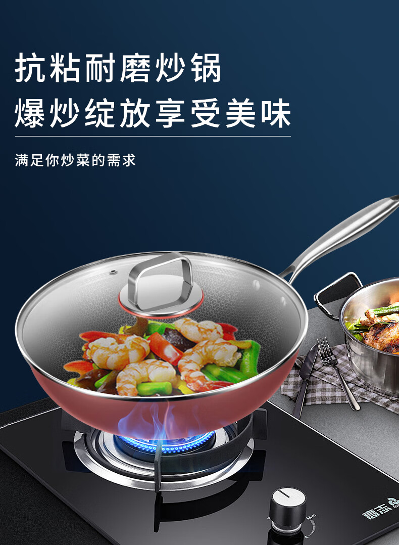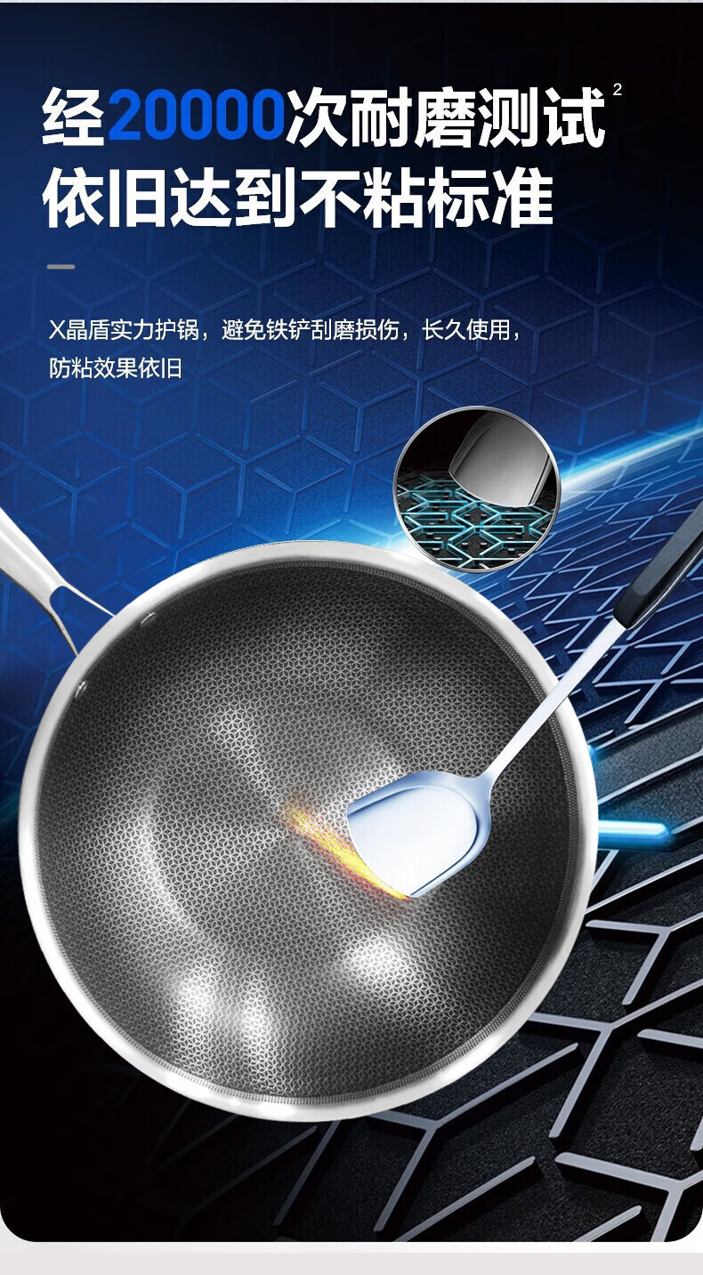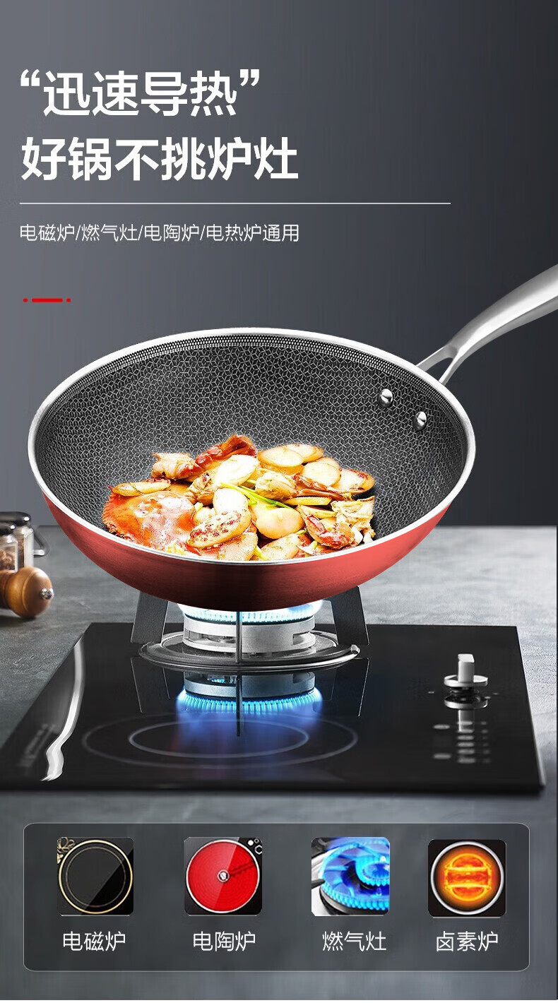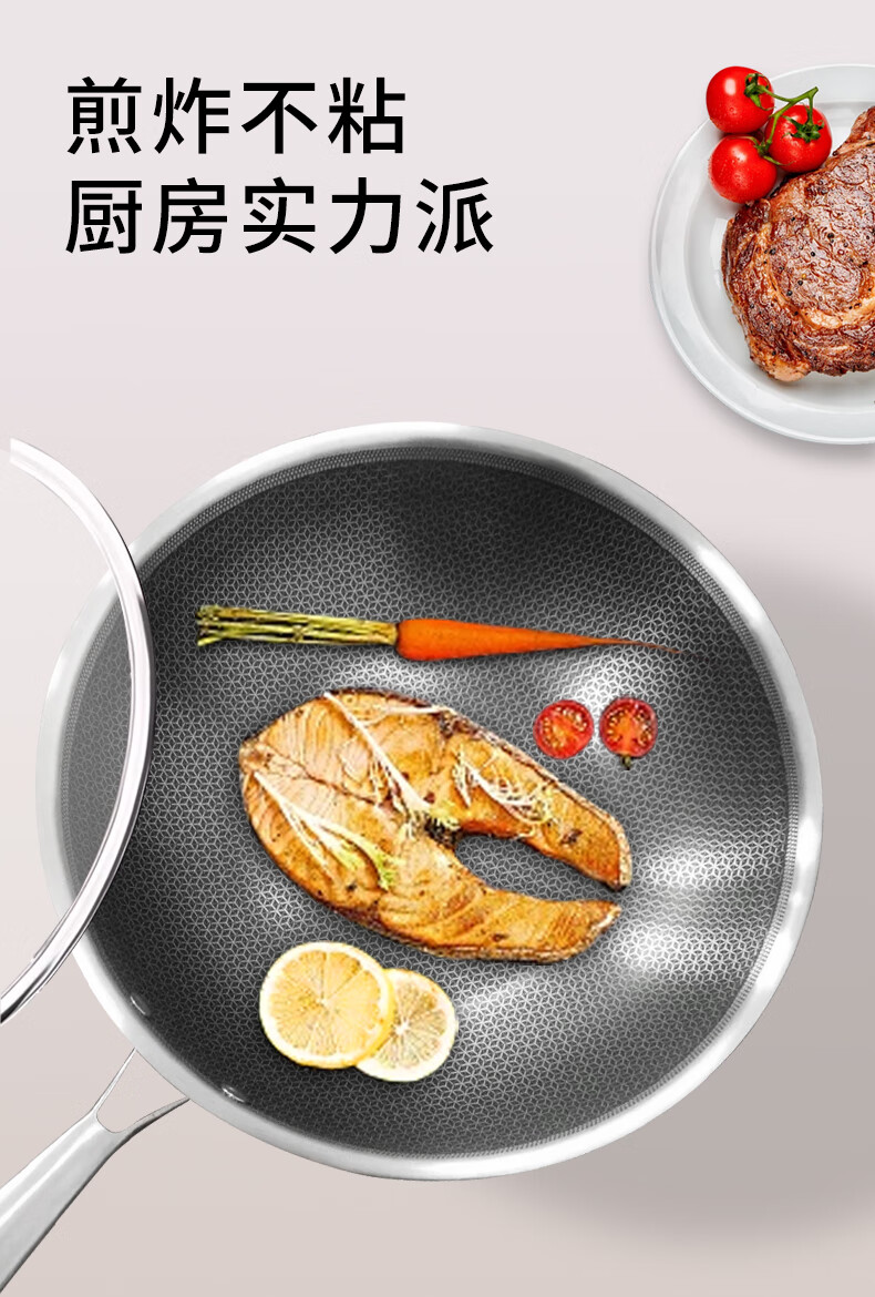 SUPOR苏泊尔轻量晶纹不锈钢炒锅炒锅家用316L不锈钢炒锅CC32JL1 32CM