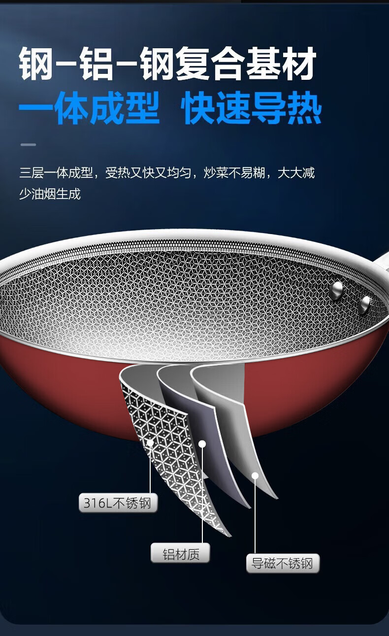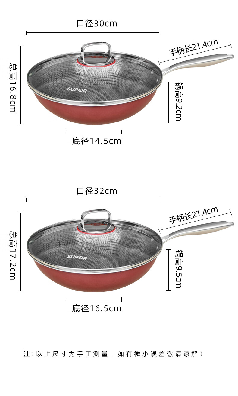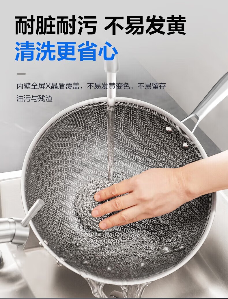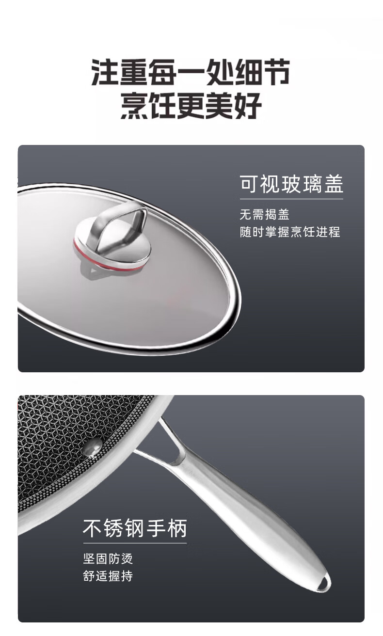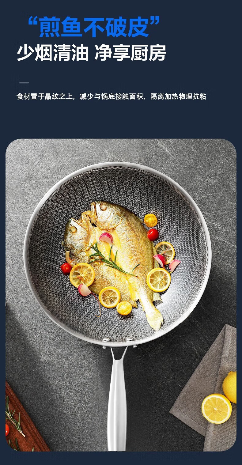 SUPOR苏泊尔轻量晶纹不锈钢炒锅炒锅家用316L不锈钢炒锅CC32JL1 32CM
