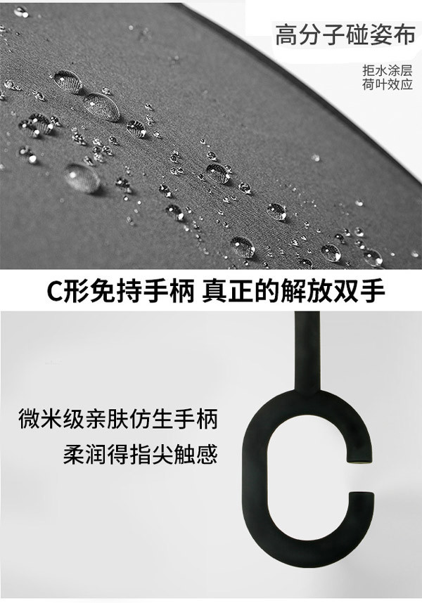 得益于这个设计,我们在收伞的时候,手接触到的是没有雨水的那一面,这样就可以保证衣服与地板的干净清爽啦。