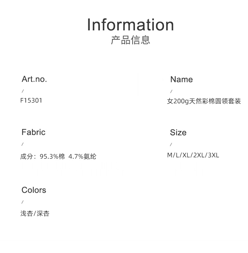 weyo秋冬女士200g天然彩棉圆脸保暖衣套装A15301+A15402