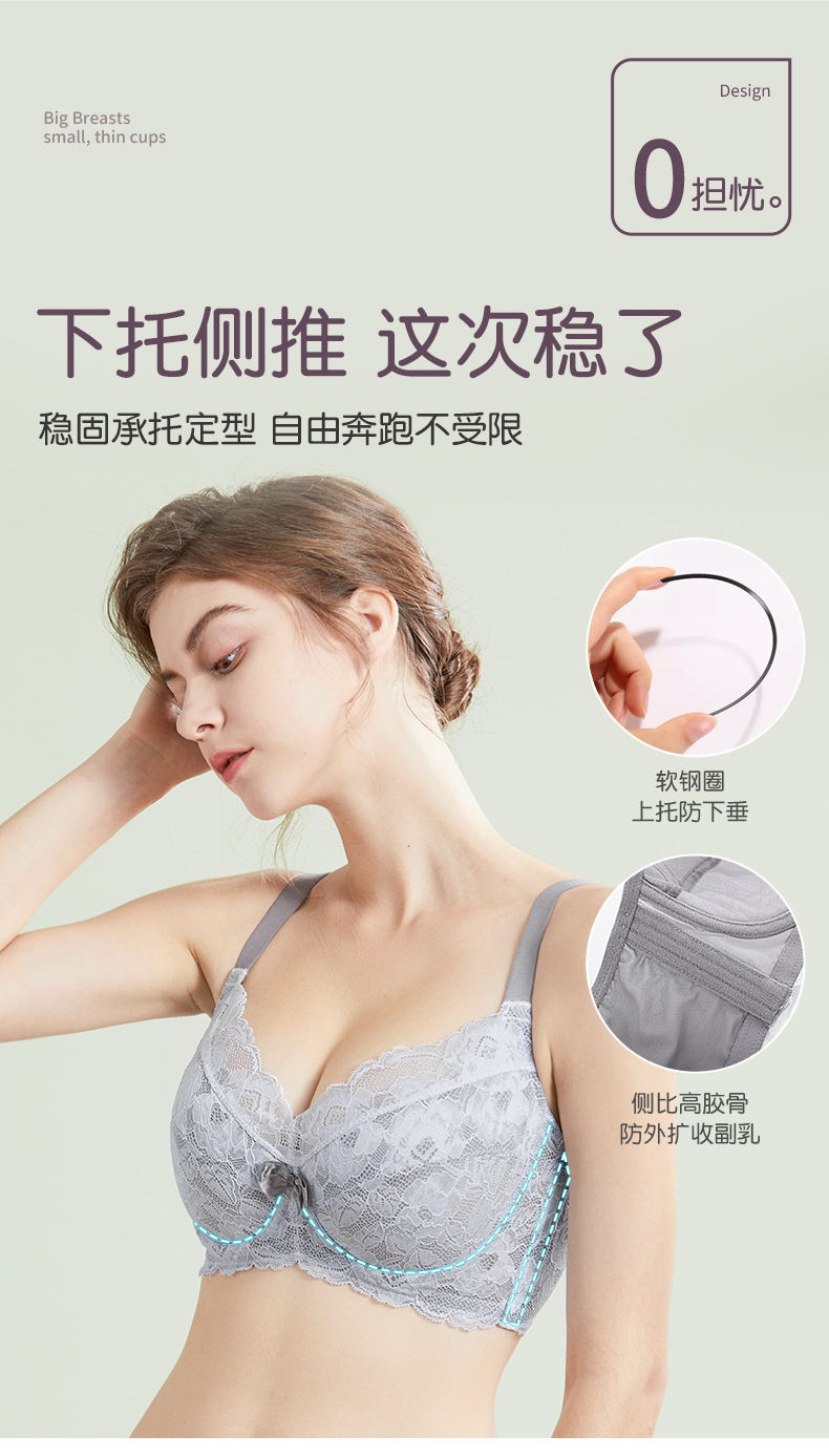 雅黛丽内衣大胸显小胸性感纯欲超薄款文胸聚拢上托防下垂女士胸罩