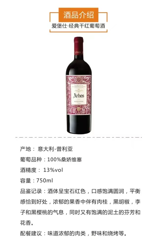 爱堡仕干红葡萄酒Arbos Sangivoese (2015)