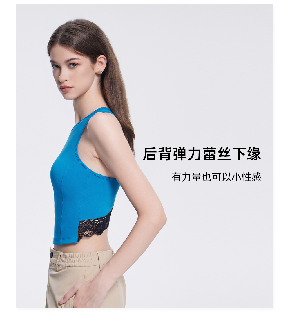 TITIKA中强度防震瑜伽运动内衣 地中海蓝蕾丝健身服背心(带胸垫)11121