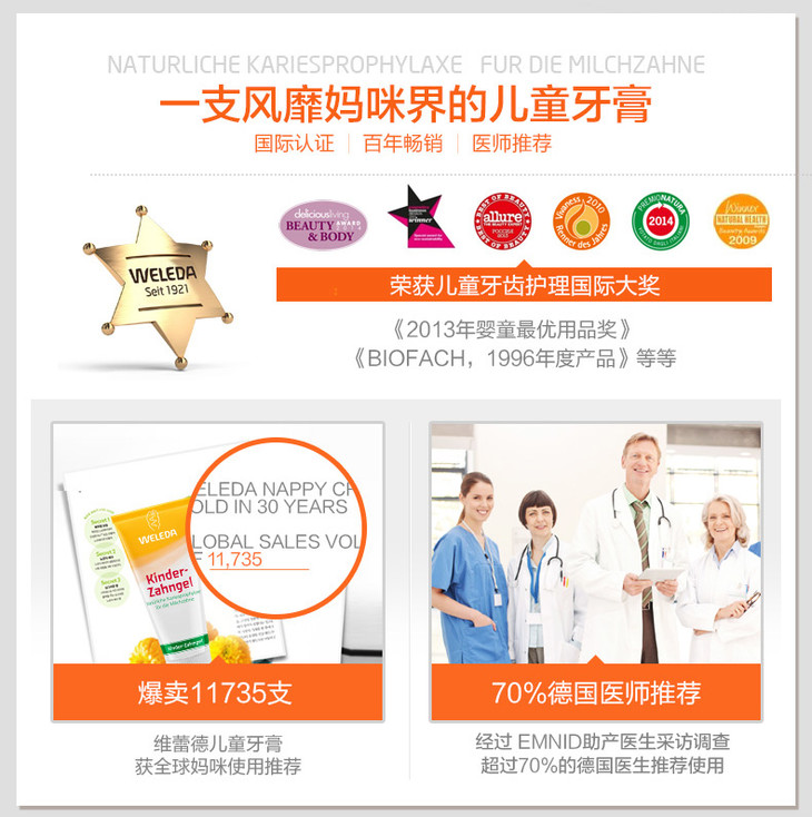 维蕾德有机金盏花儿童牙膏(无氟/可食用)50g