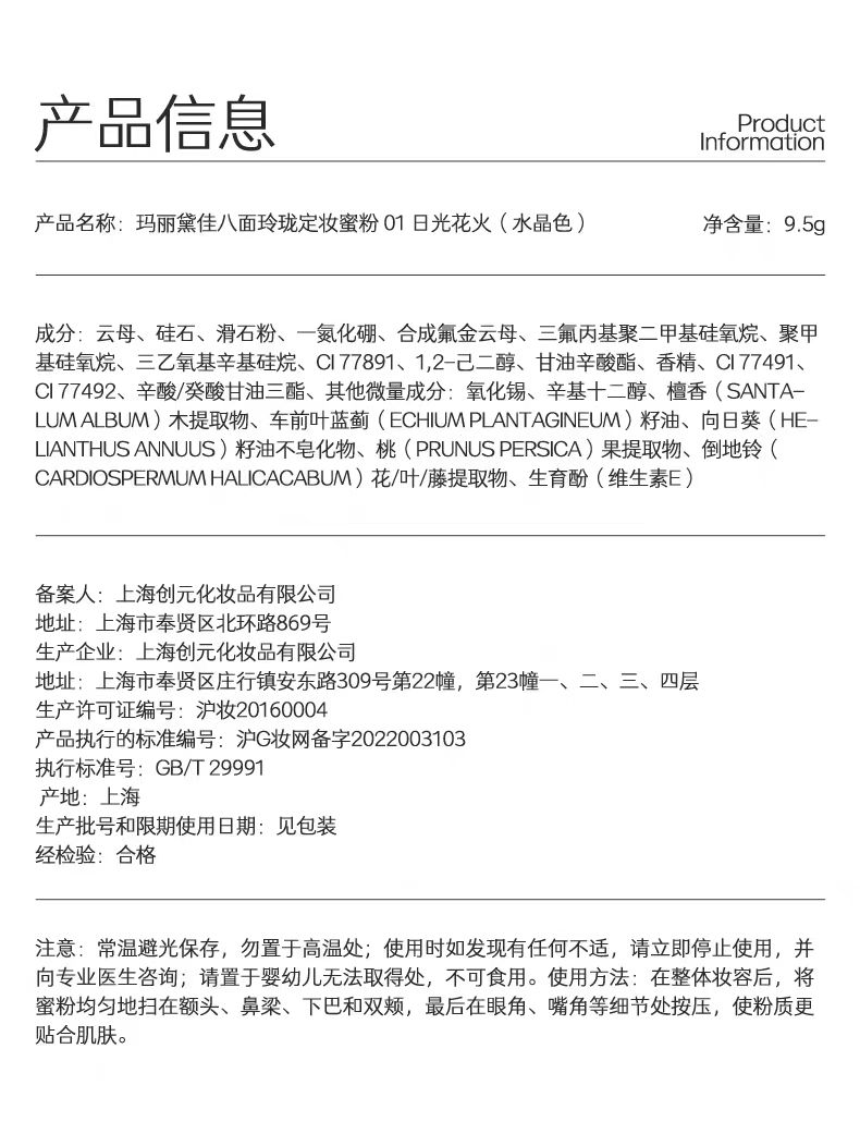 4楼Eubelle欧蓓 玛丽黛佳八面玲珑定妆蜜粉9.5g 持妆遮瑕/自然散粉/持久清透 吊牌价:189元 活动价:170元