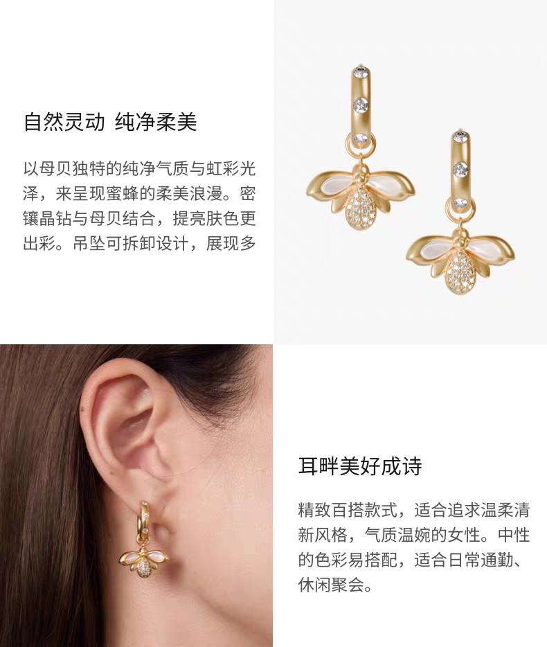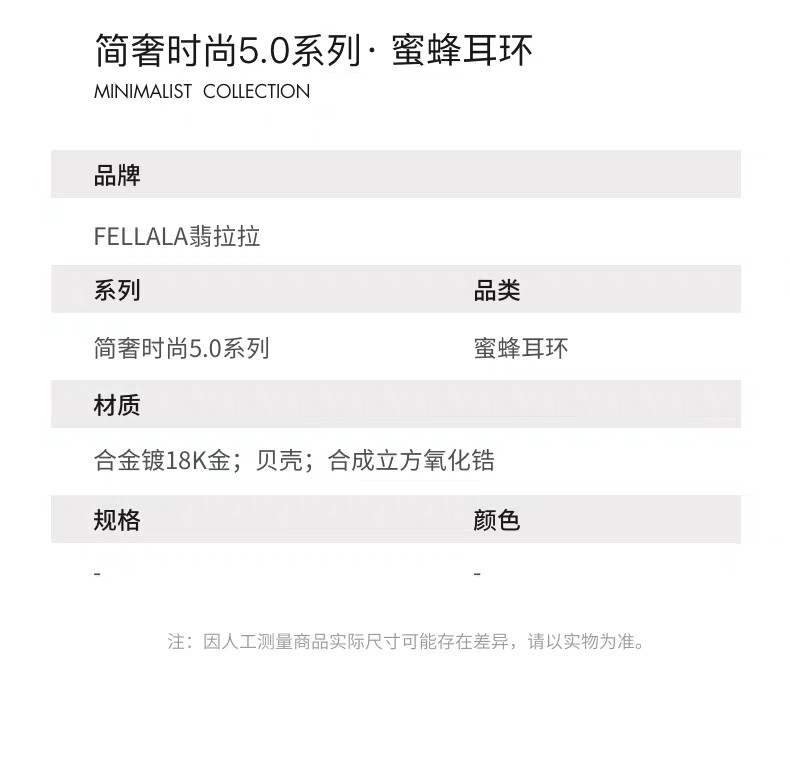 2楼Fellala/翡拉拉「简奢时尚5.0」系列小蜜蜂耳环货号925431105吊牌价799现价719