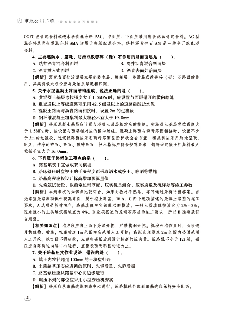 市政公用工程管理与实务百题讲坛