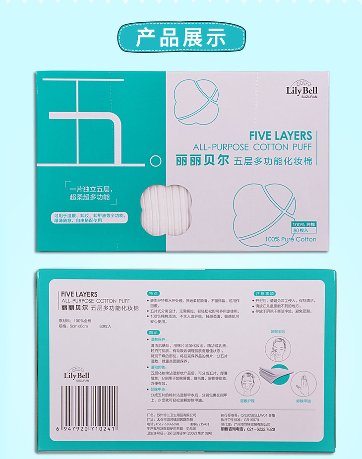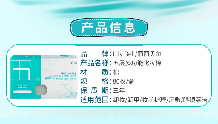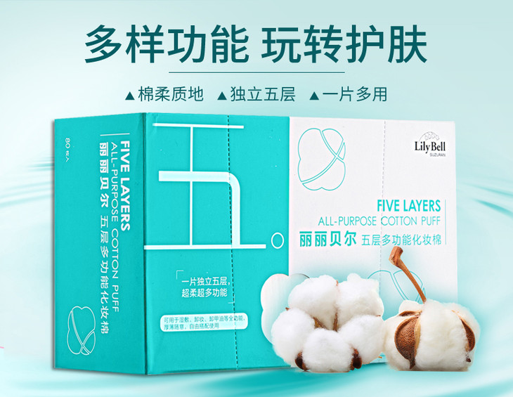 丽丽贝尔五层多功能化妆棉50支装*2 易好