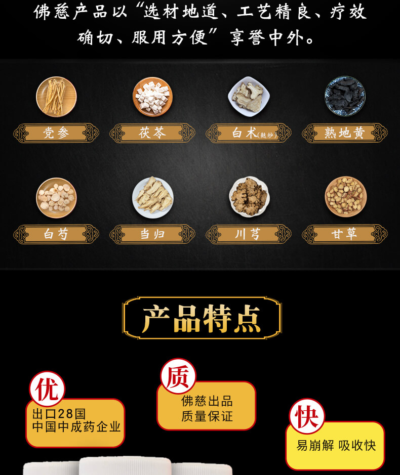佛慈 八珍丸200丸浓缩丸补气益血气血两虚四肢乏力面色萎黄正品药