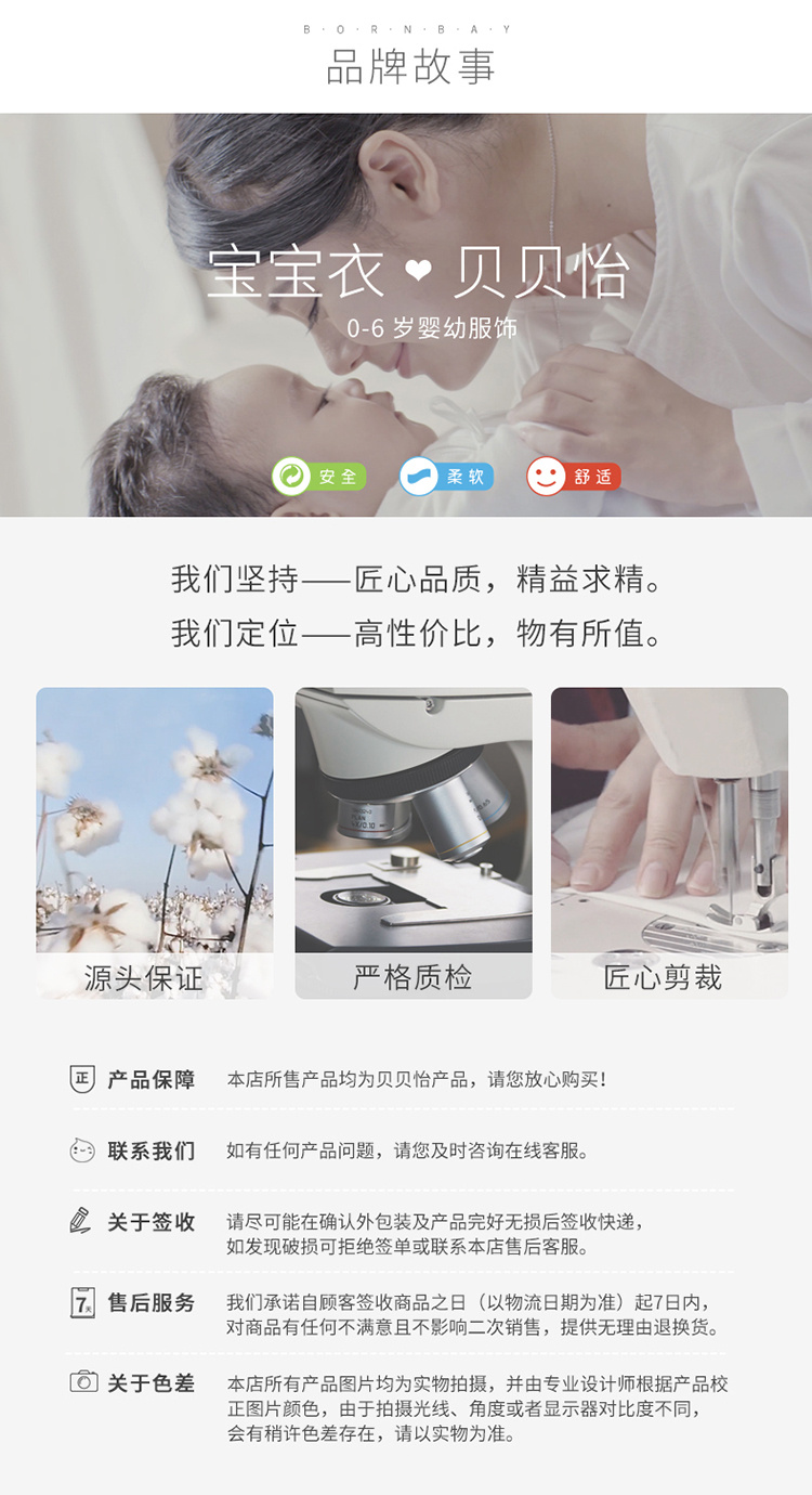 - 贝贝怡专注0-6岁婴幼儿服饰,坚持安全、柔软、舒适的产品理念,为千万中国家庭提供超高品质、安全可靠的婴幼儿服饰产品,妈妈放心,宝宝开心!