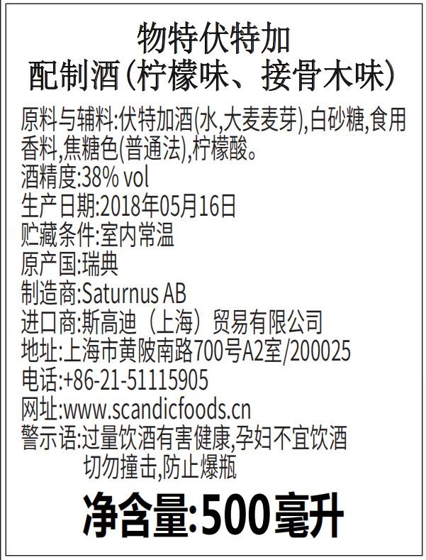 斯耐普斯风味物特伏特加配制酒(柠檬、接骨木味)物特伏特加
