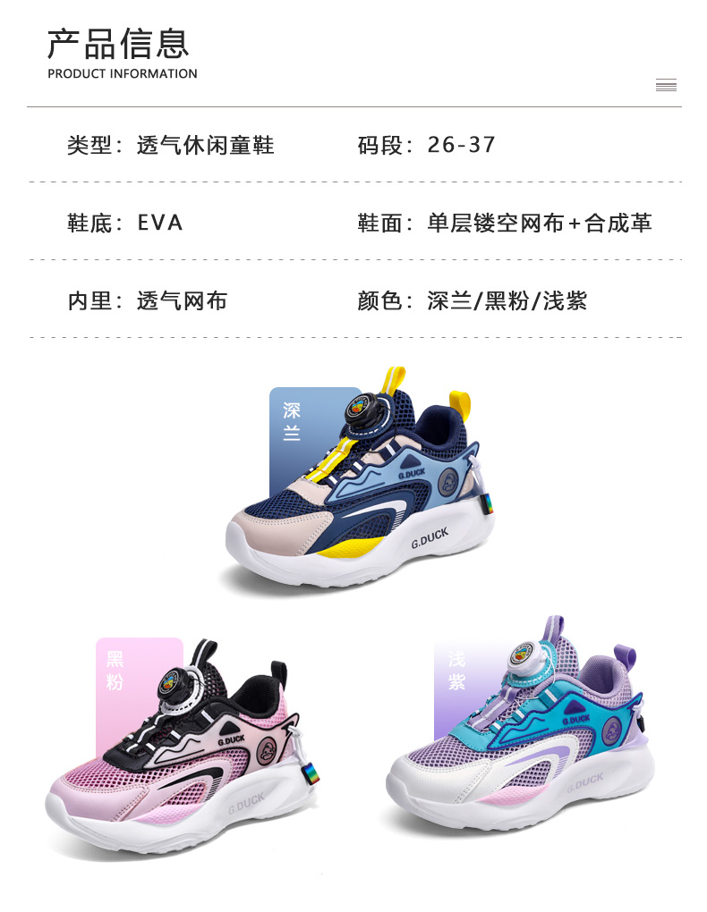 G.DUCK小黄鸭男童网鞋春夏新款网面透气儿童运动鞋中大童软底女童跑步鞋QCSM00126-37