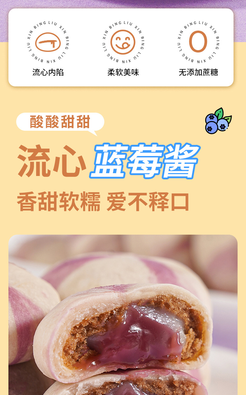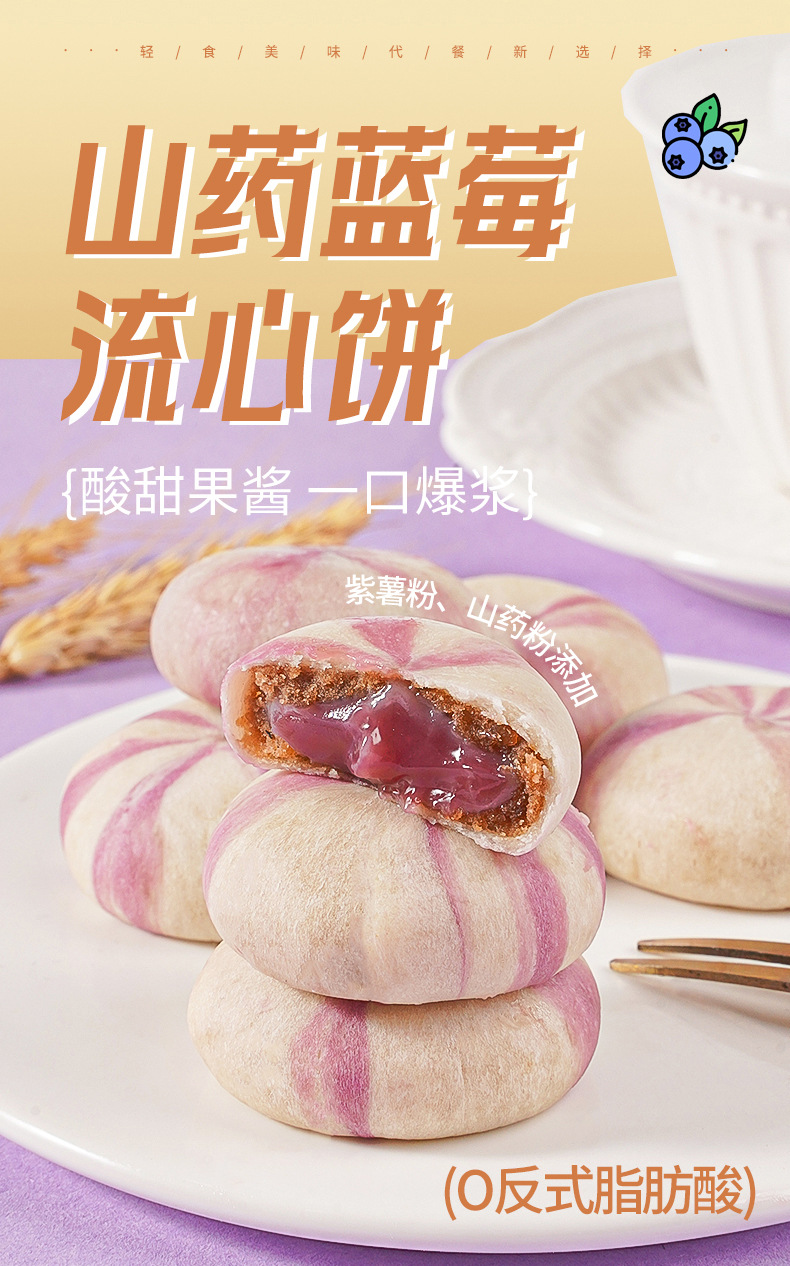 【新鲜直达❗️山药蓝莓流心饼】甄选品质原料制作,软糯Q弹 馅料满满 四层用料 一口爆浆 紫薯果香国潮糕点休闲小零食