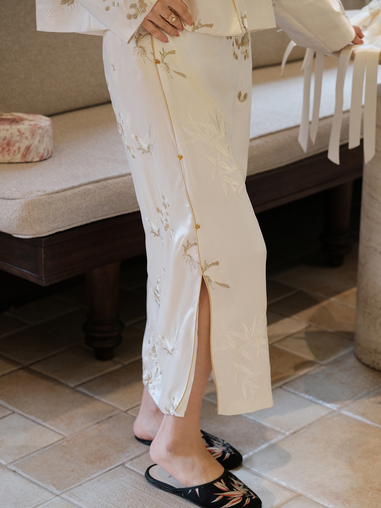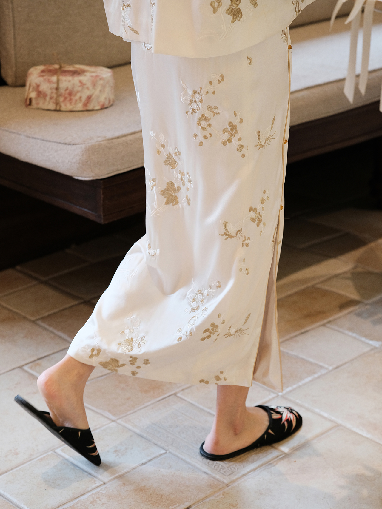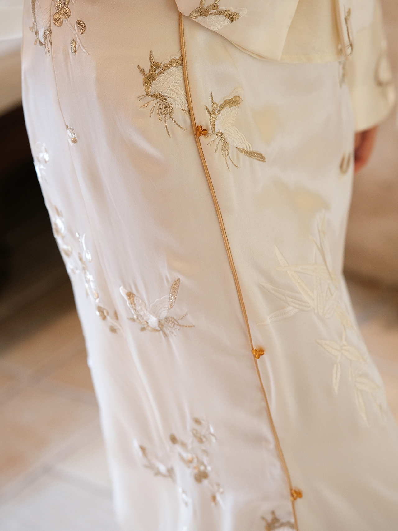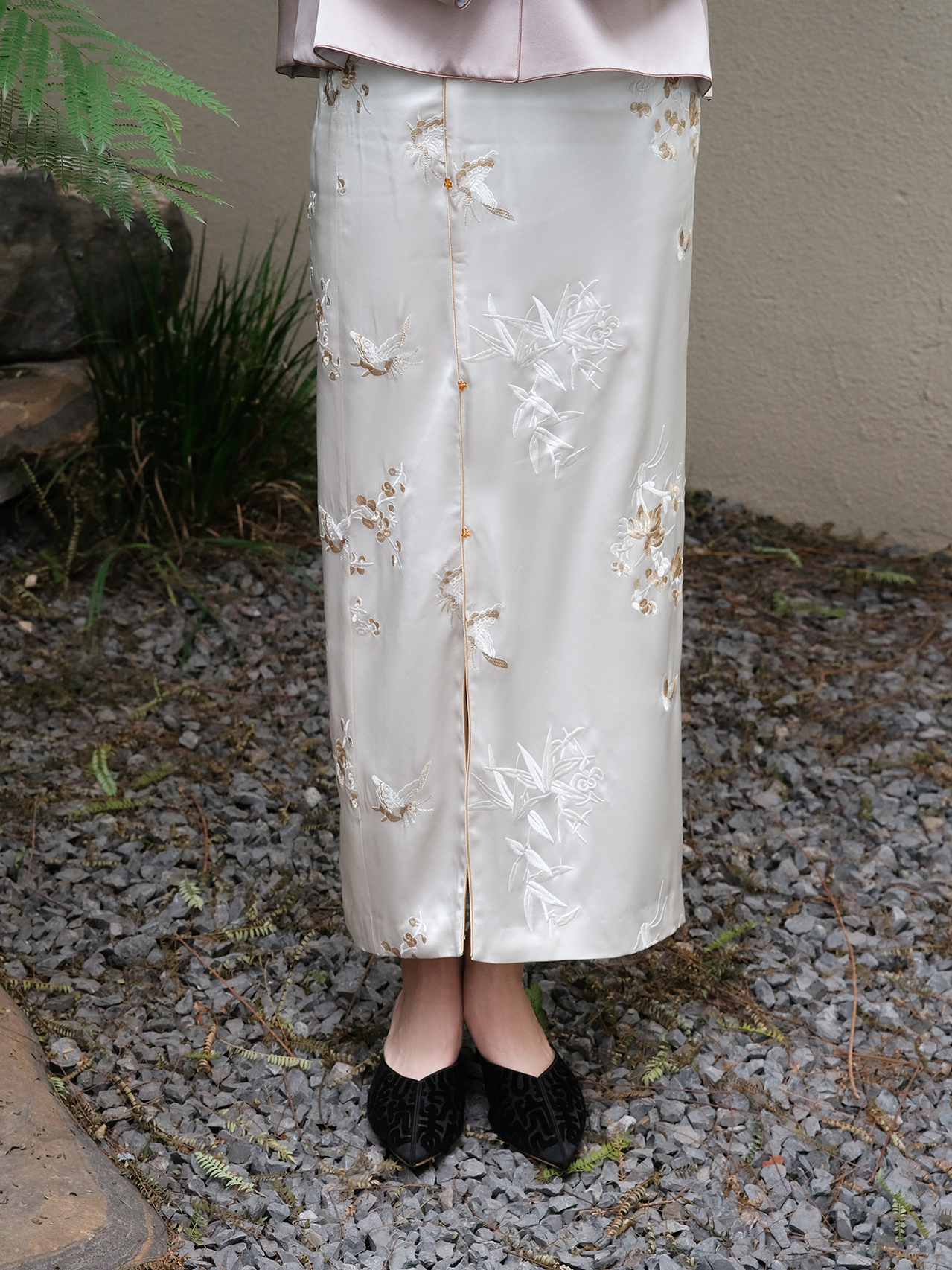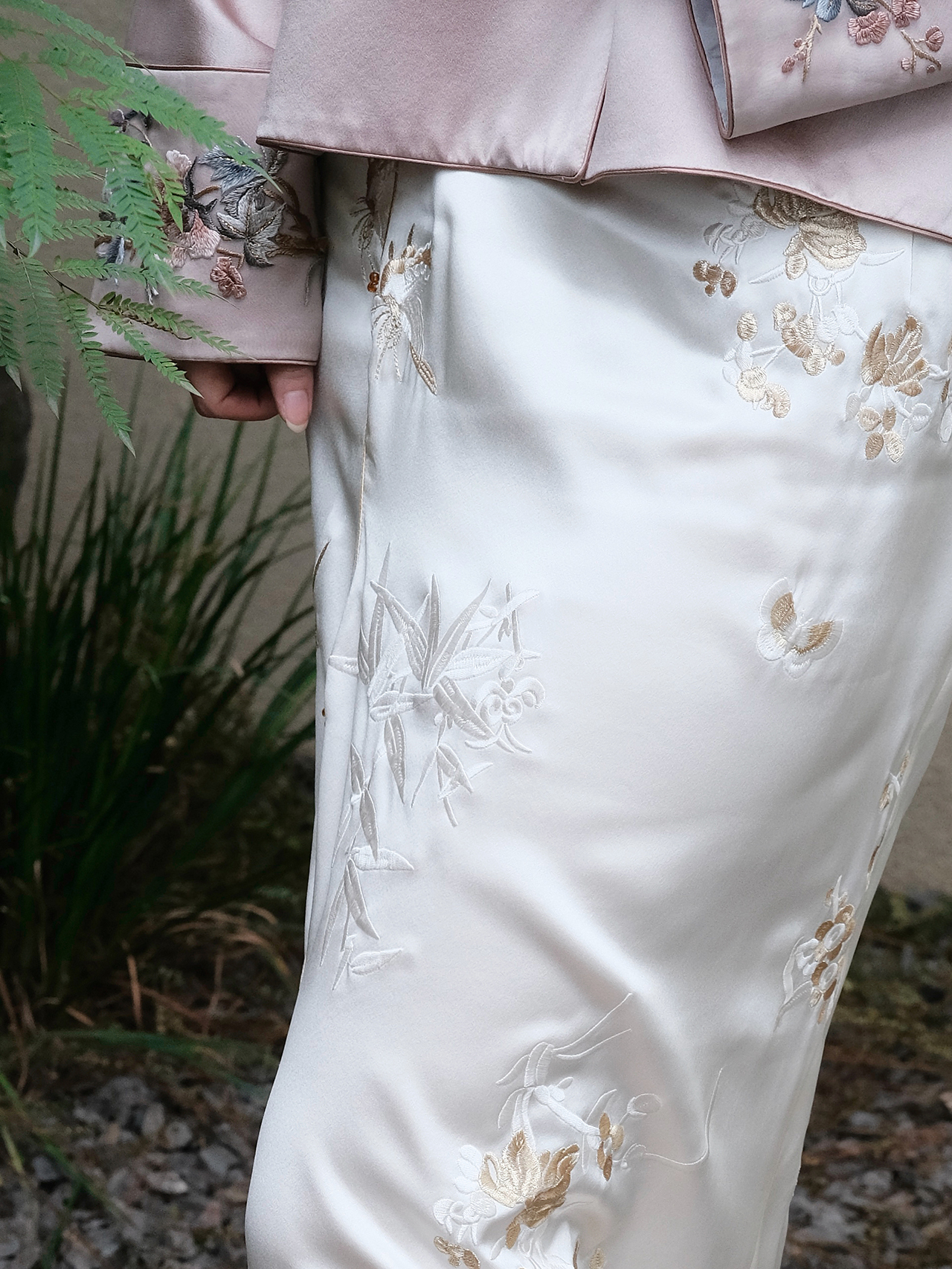 盛唐牡丹 |重缎真丝梅竹蝶手推绣半裙