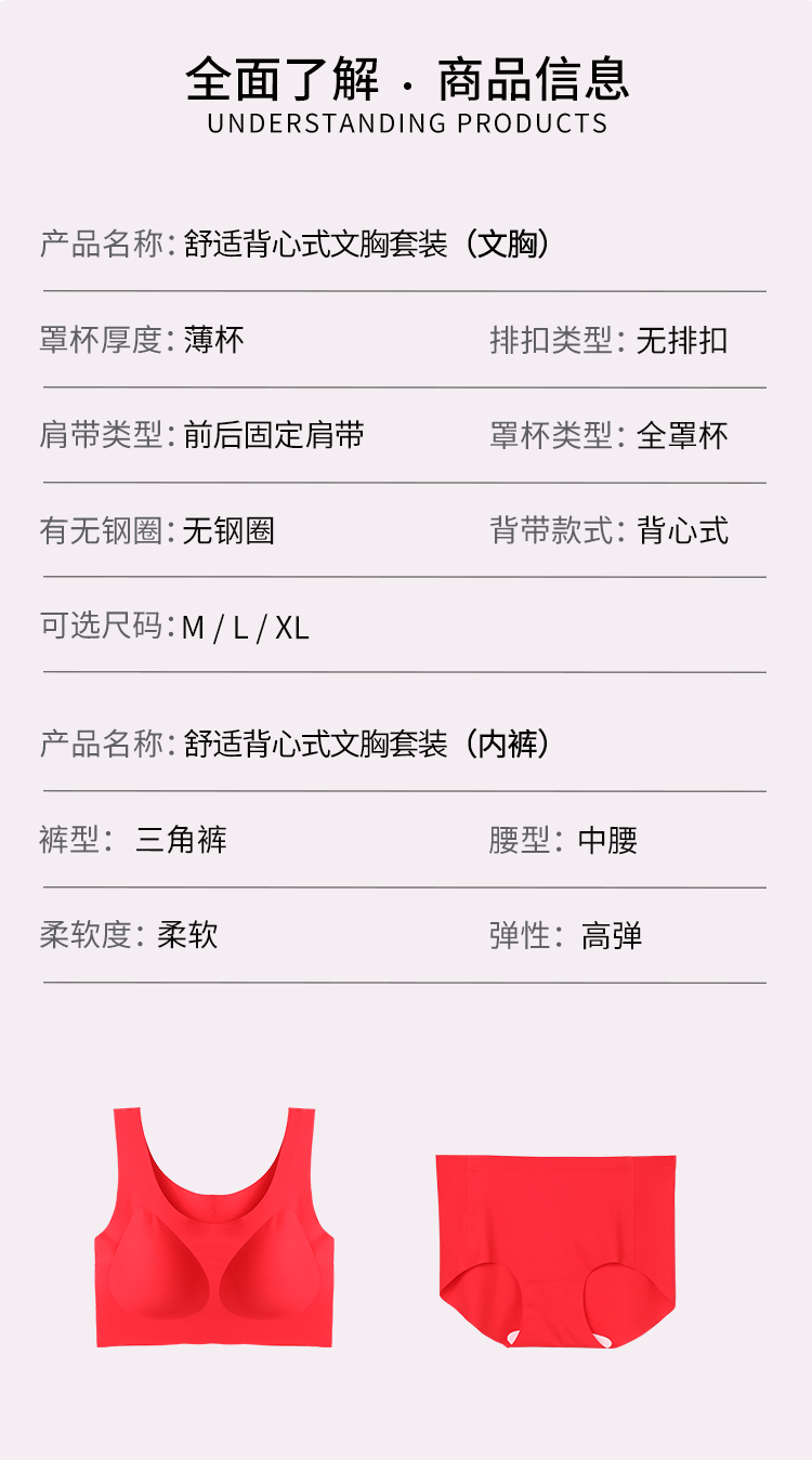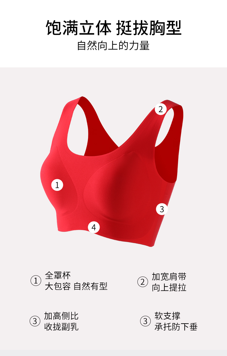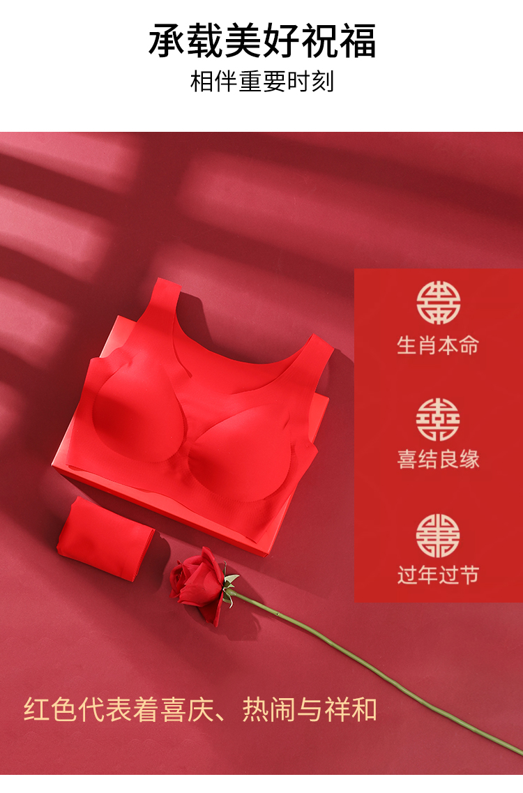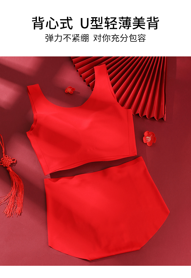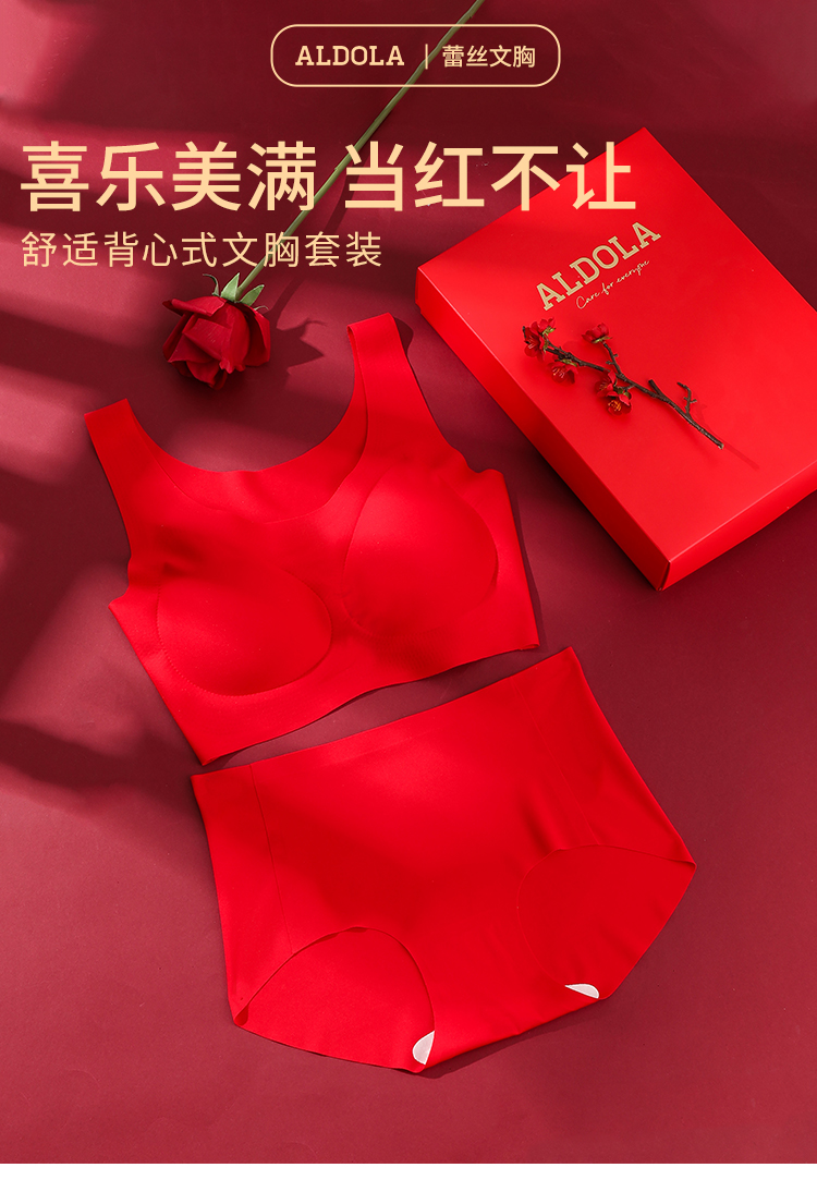 雅黛丽红色内衣套装结婚新娘无钢圈无痕背心式薄款文胸内裤本命年