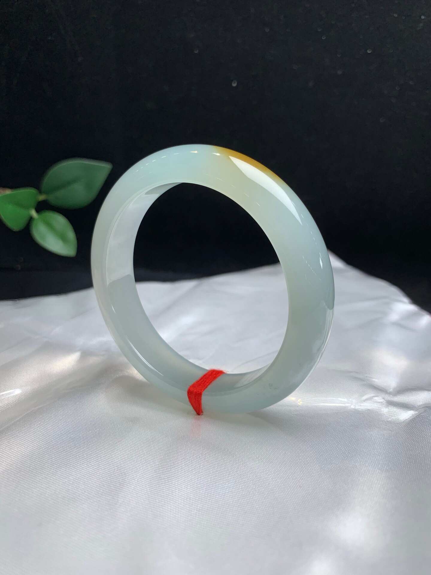 620651,51.5冰黄正圈手镯,整条底子很细腻,带底色,一截特色黄翡,清新甜美