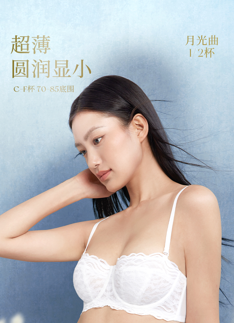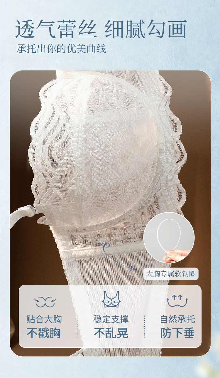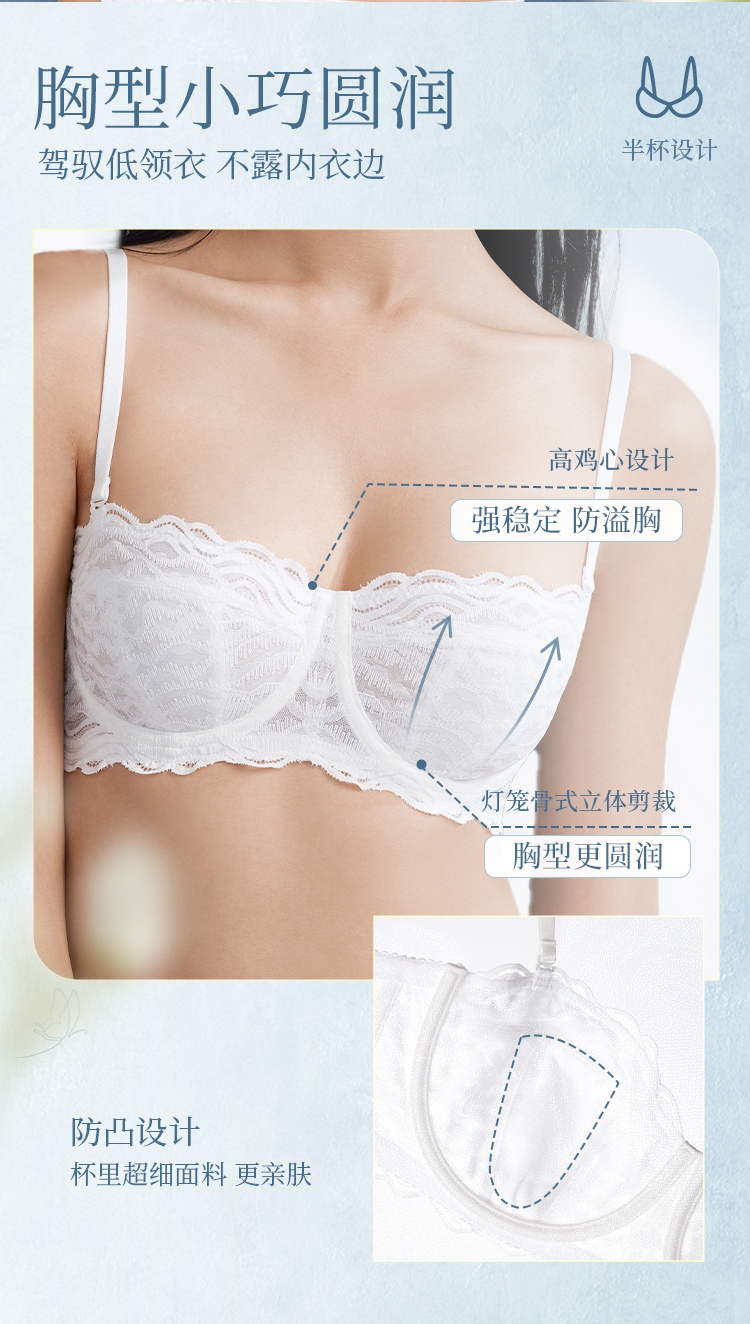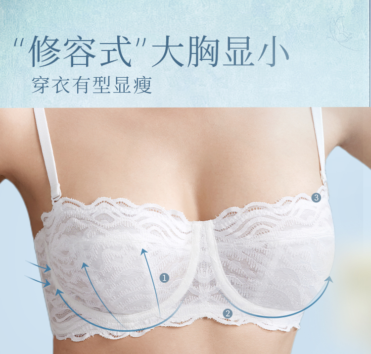 奶糖派大胸显小内衣半杯月光曲防凸点超薄无痕蕾丝显瘦承托内衣女