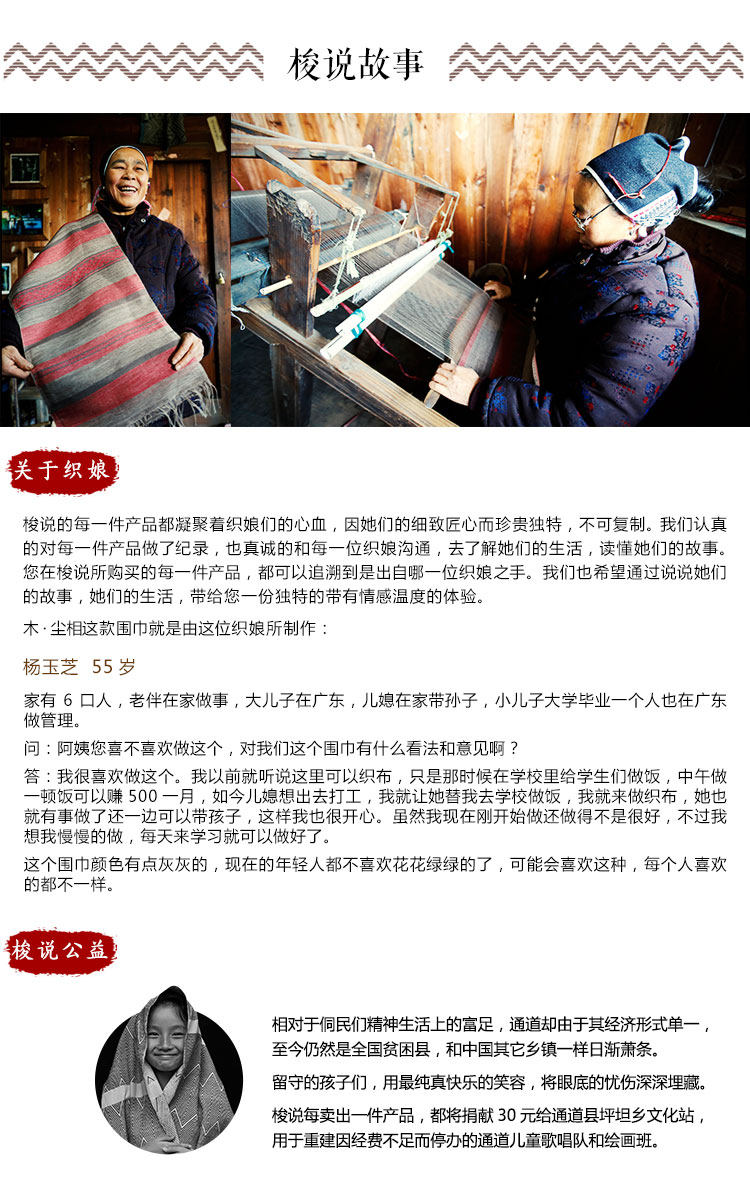 【梭说】限量 木.尘相 纯手工撞色亚麻围巾 侗族传统织锦工艺
