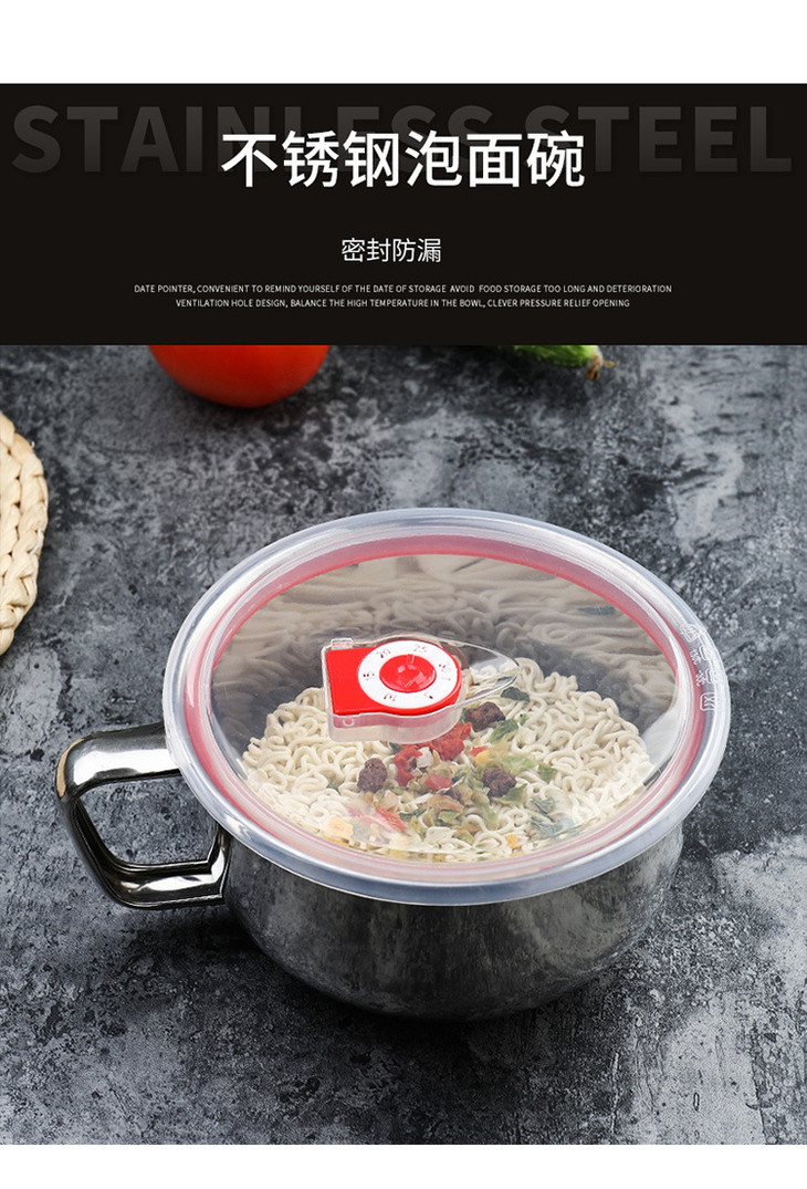【碗】*圆形不锈钢泡面碗 大号家用中式泡面碗带盖 学生宿舍泡方便面碗
