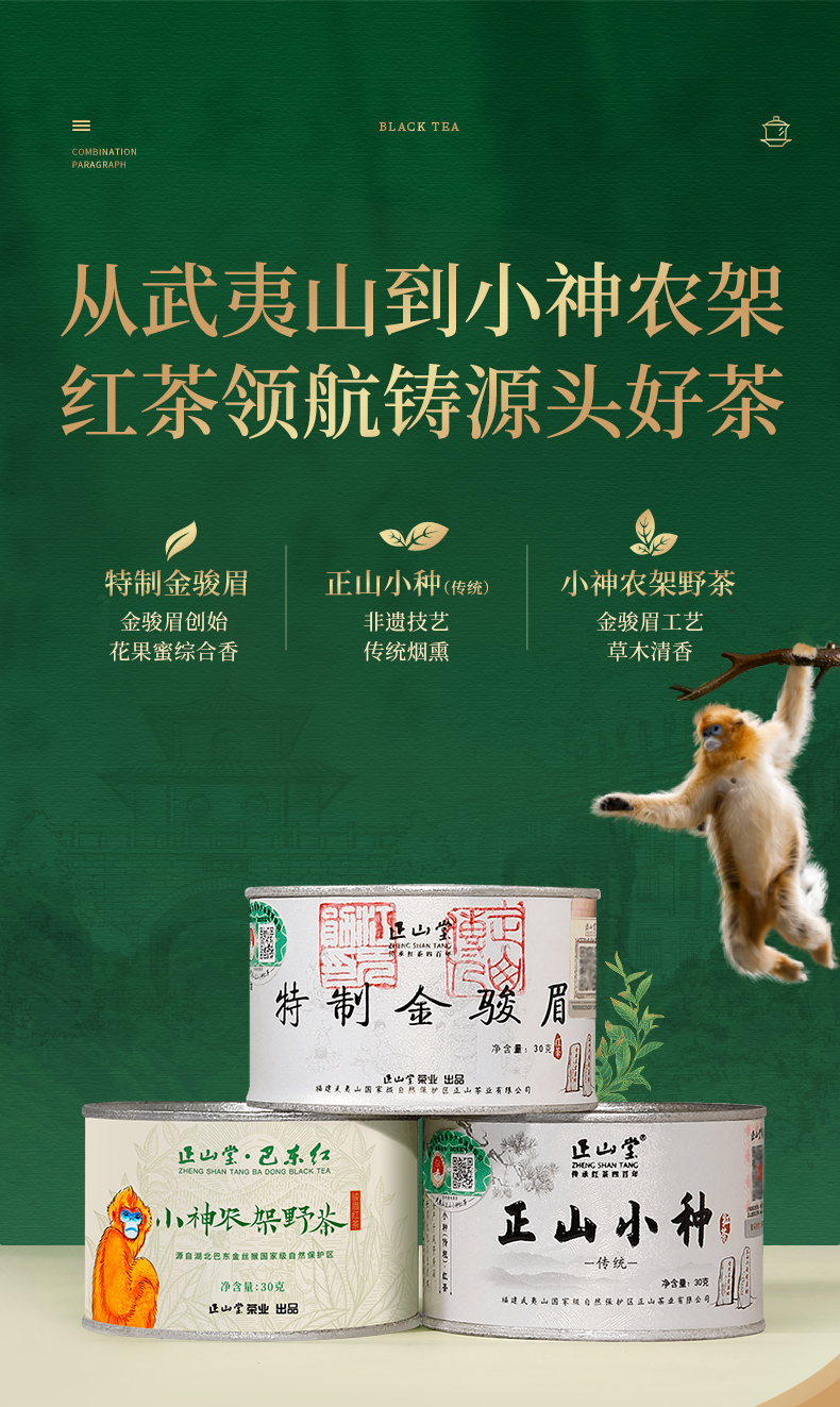 正山堂 金骏眉传统正山小种巴东红小神农架野茶组合 特级送礼90g/150g