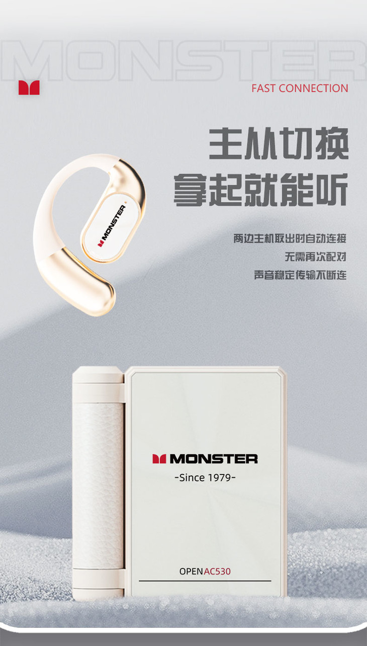 魔声折叠收纳挂耳式蓝牙耳机AC530 ,升级生物纤维振膜喇叭,舒适不勒耳,可折叠