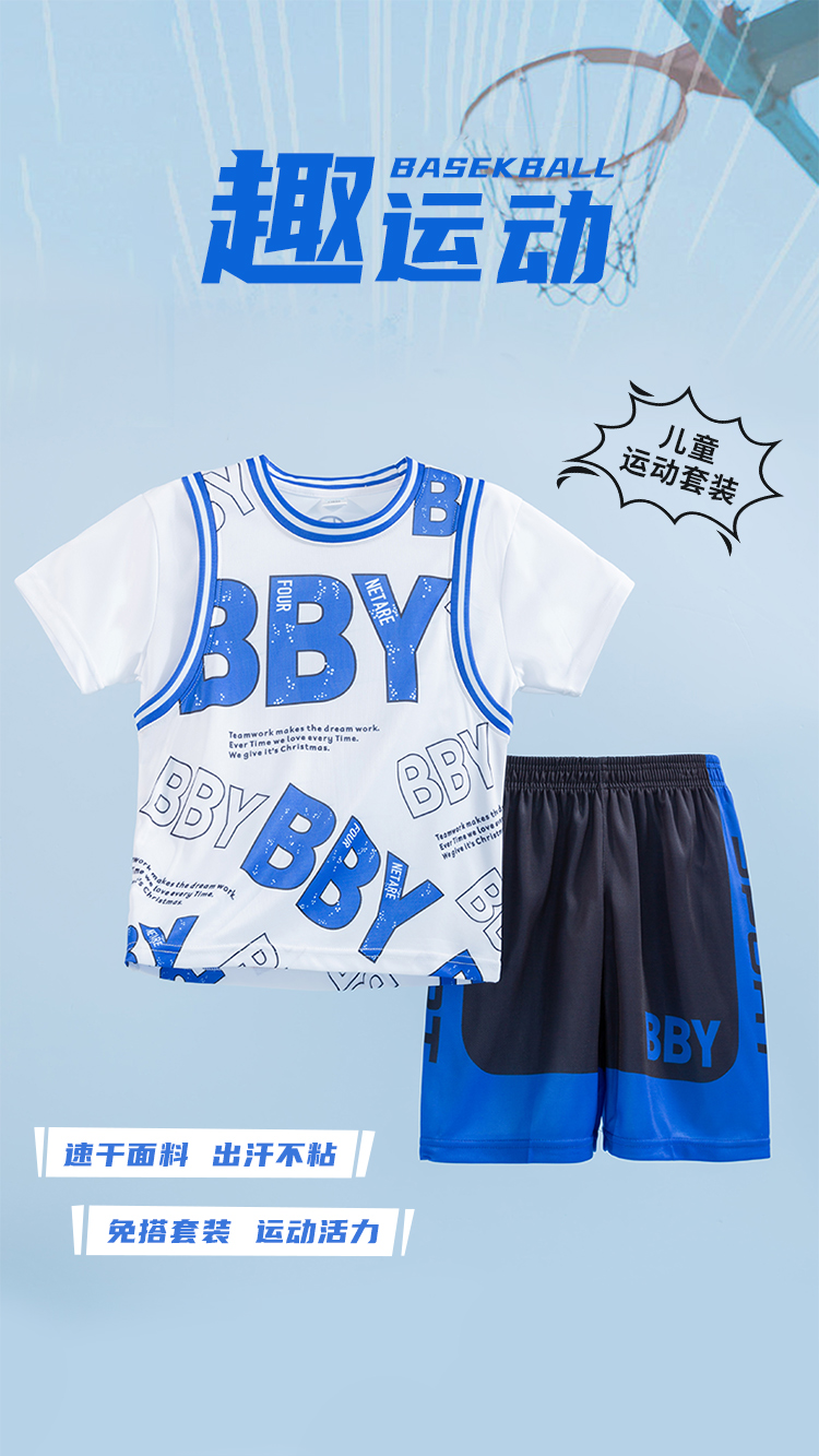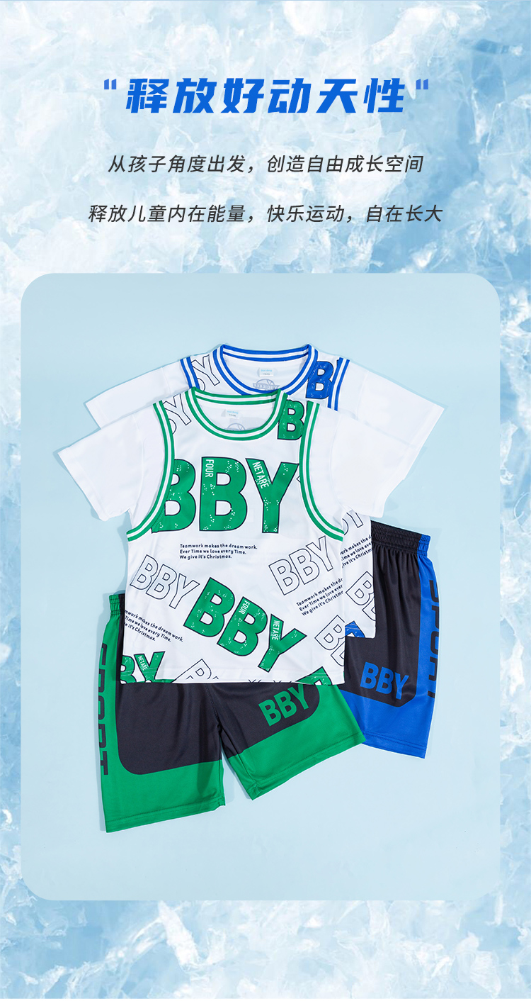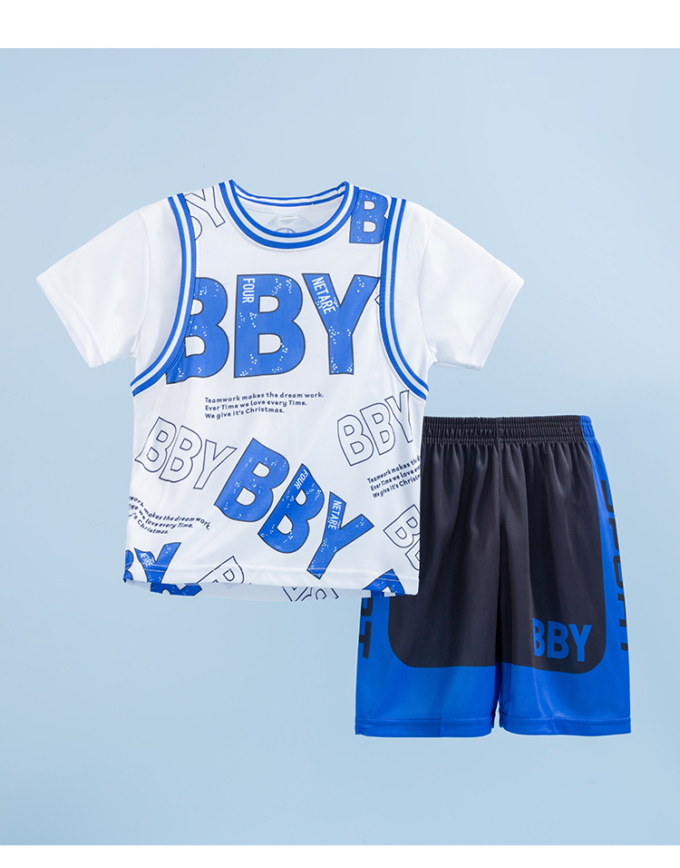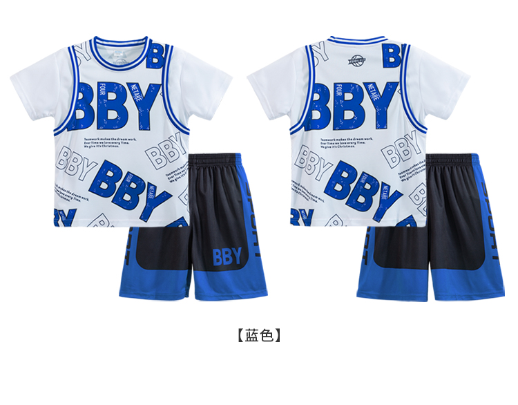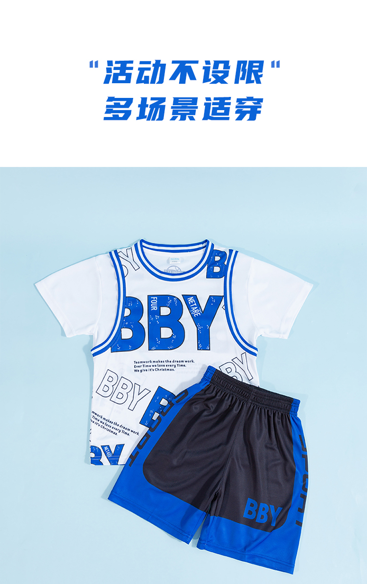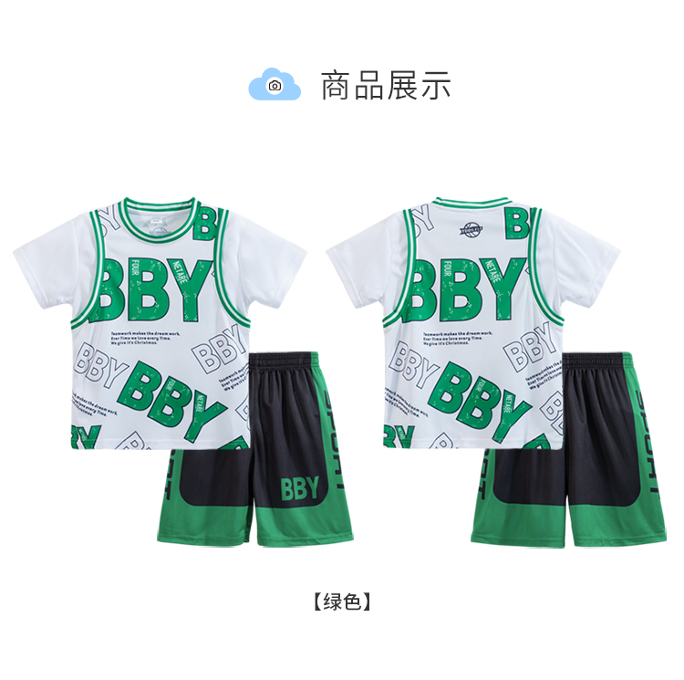 贝贝怡男童夏季短袖短裤运动套装儿童球衣速干服中大童篮球服套装232T2566