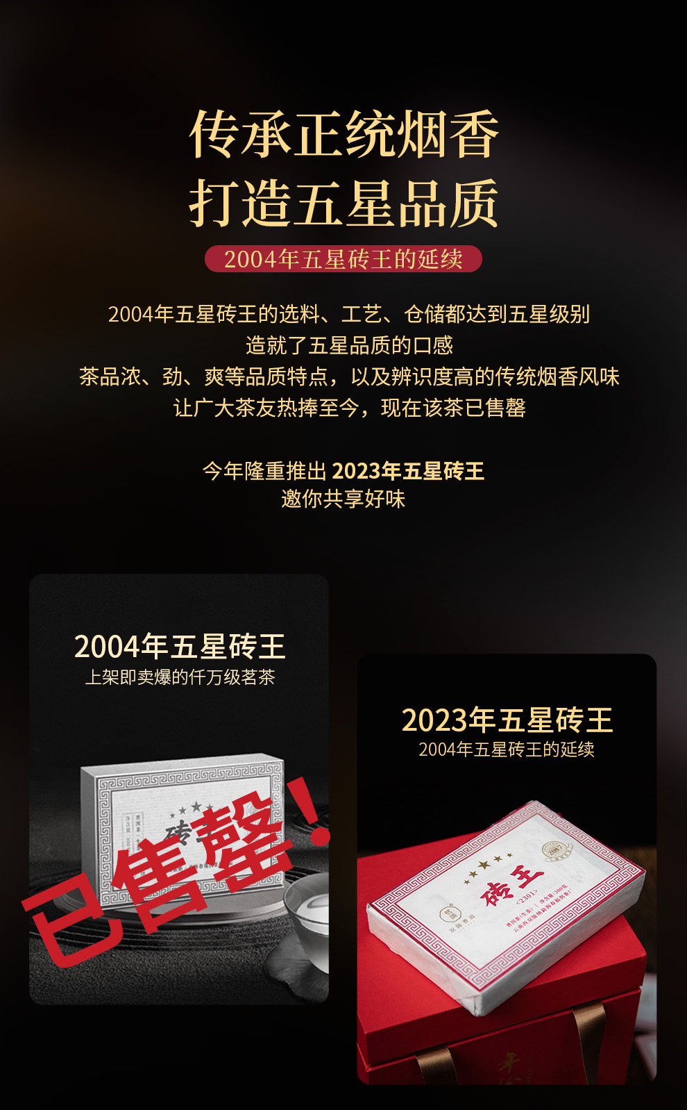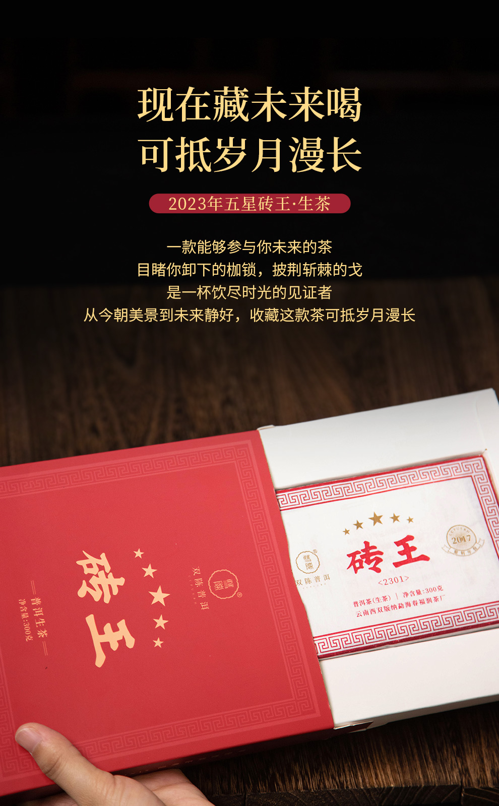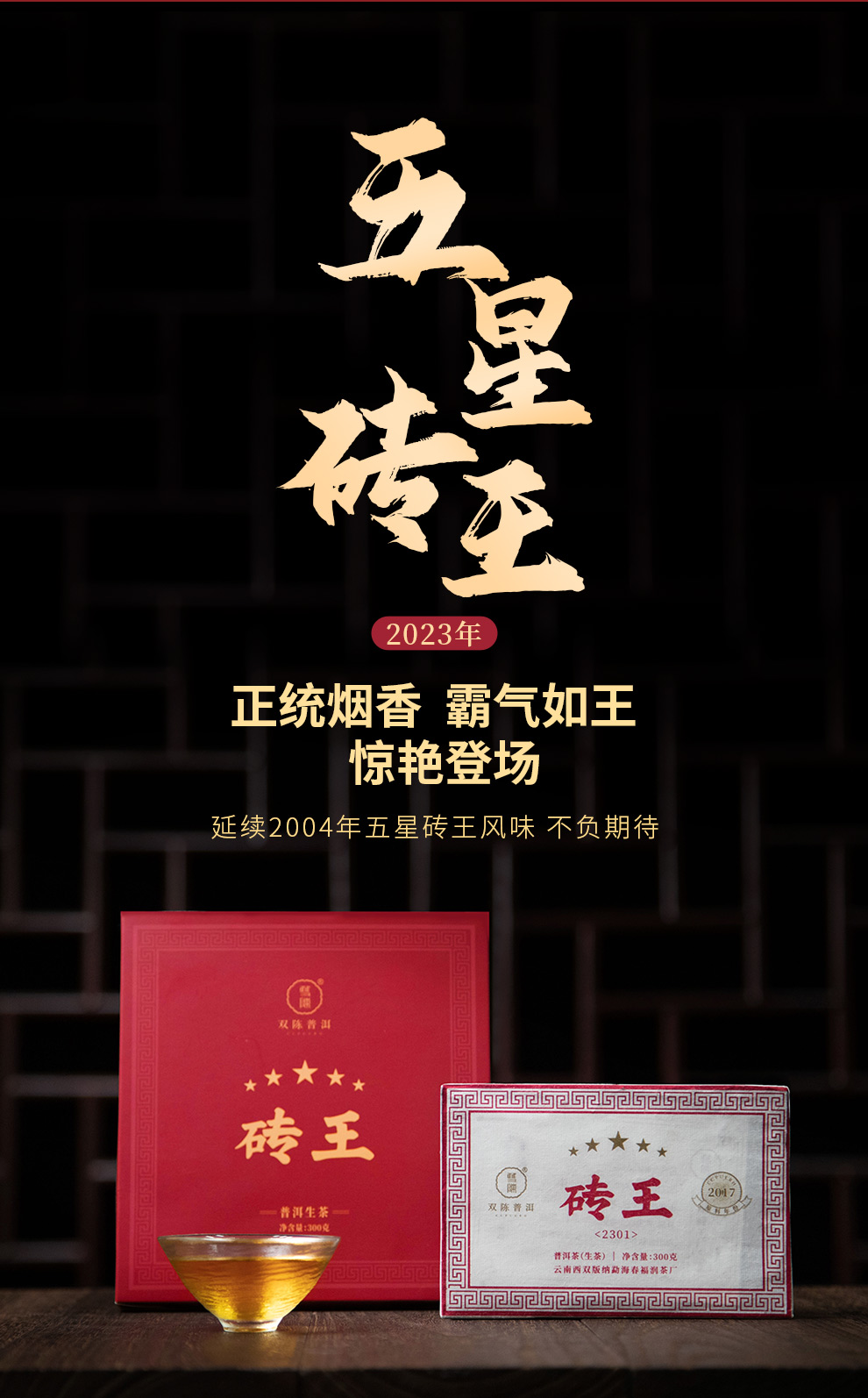 双陈普洱2023年五星砖王300克浓强厚重品质优秀滋味强劲延续04年五星砖王