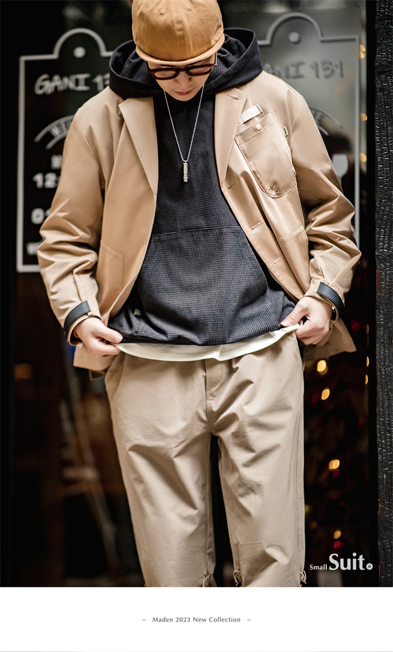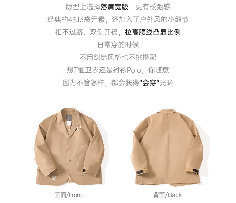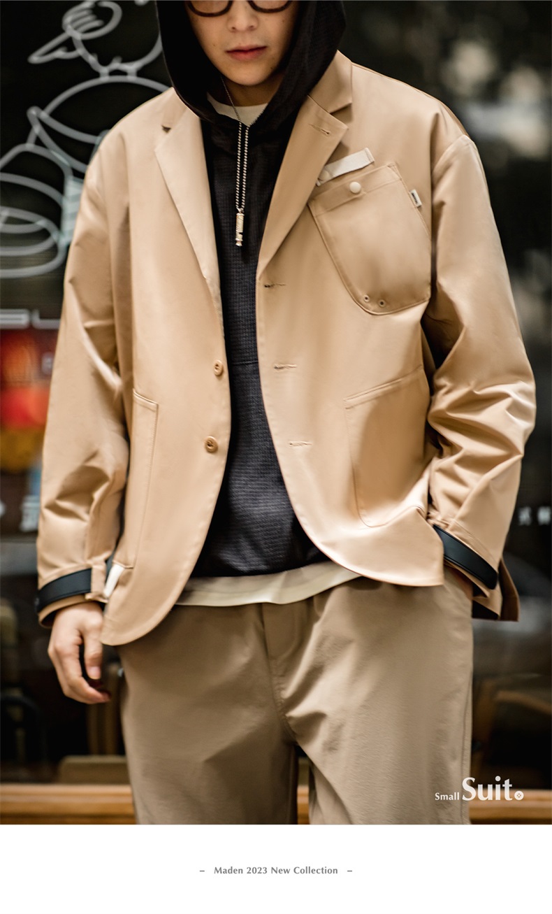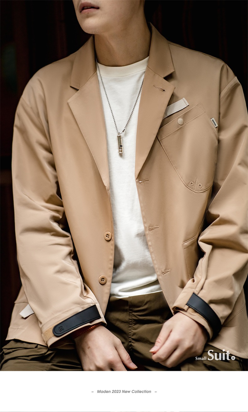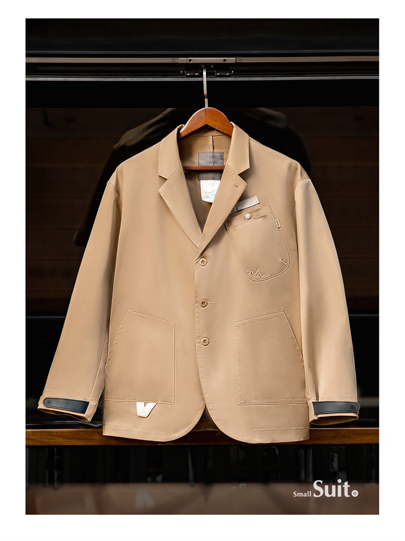 工装优选 美式休闲平驳领小西装夹克多口袋机能宽松西服外套男春