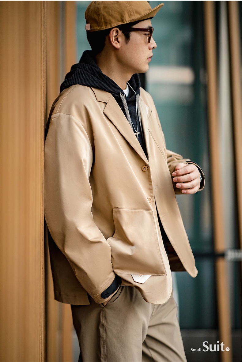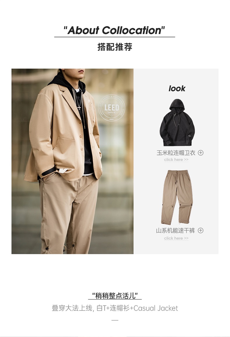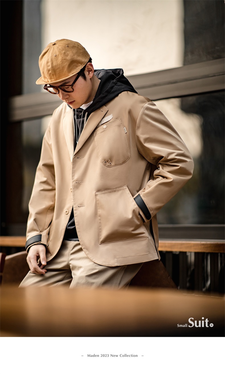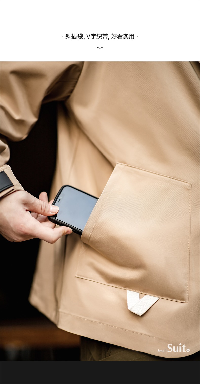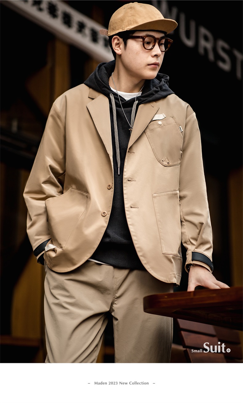 工装优选 美式休闲平驳领小西装夹克多口袋机能宽松西服外套男春