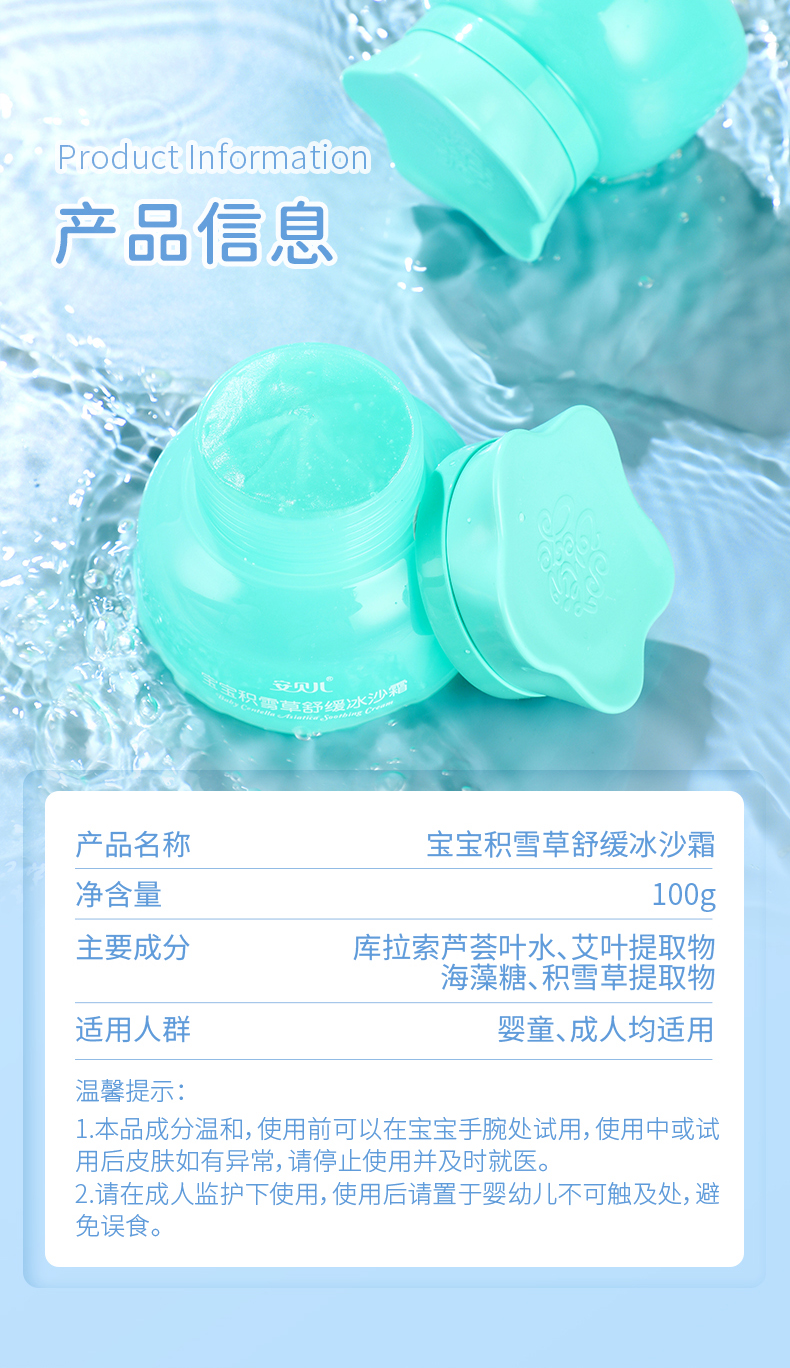 安贝儿宝宝积雪草舒缓冰沙霜送小样3g*2