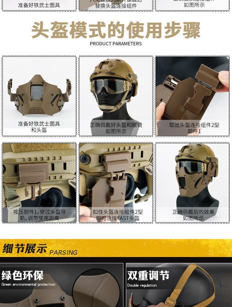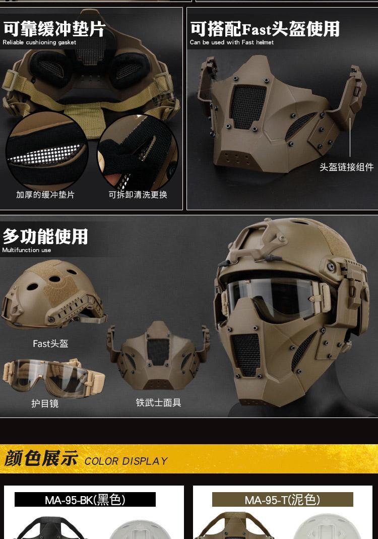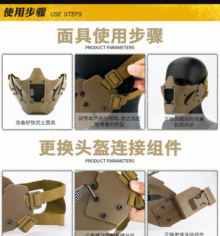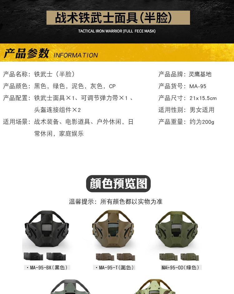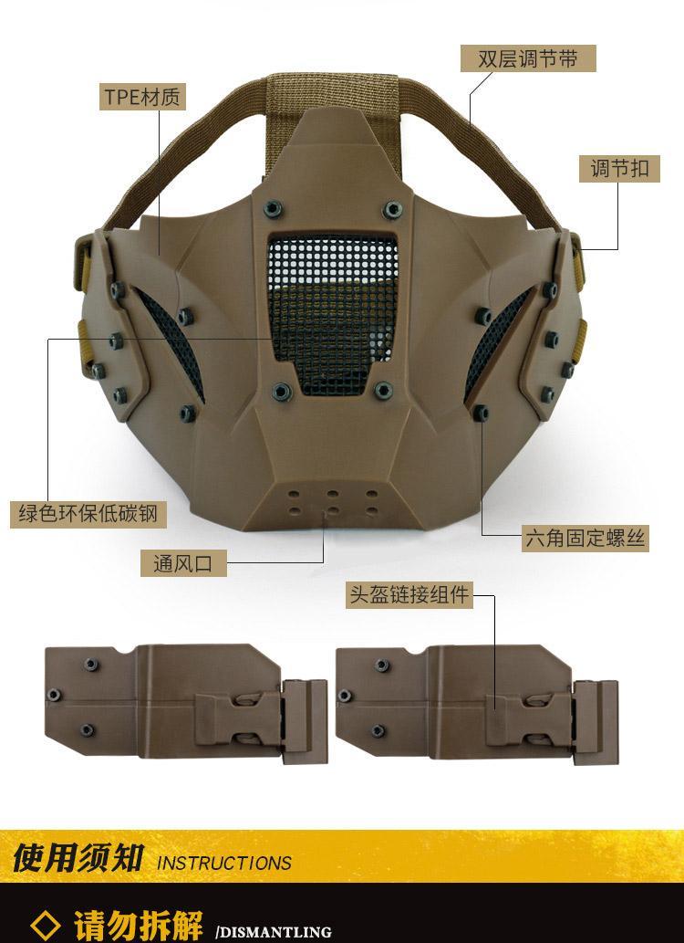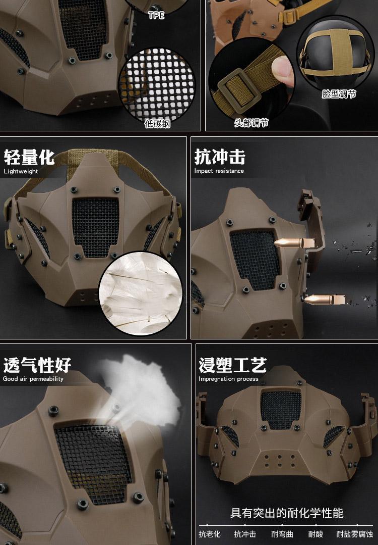 川微宝 铁武士战术面具半脸模战术头盔组防护cos装备透气纯色面罩