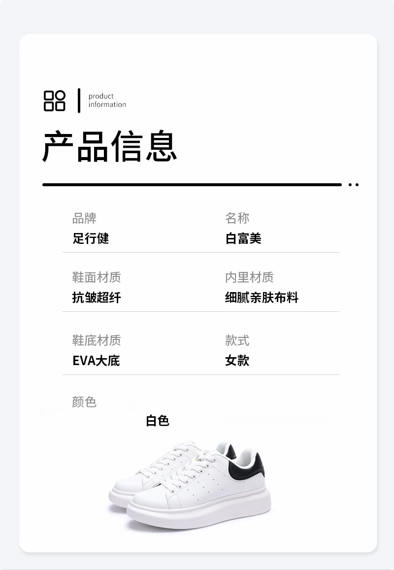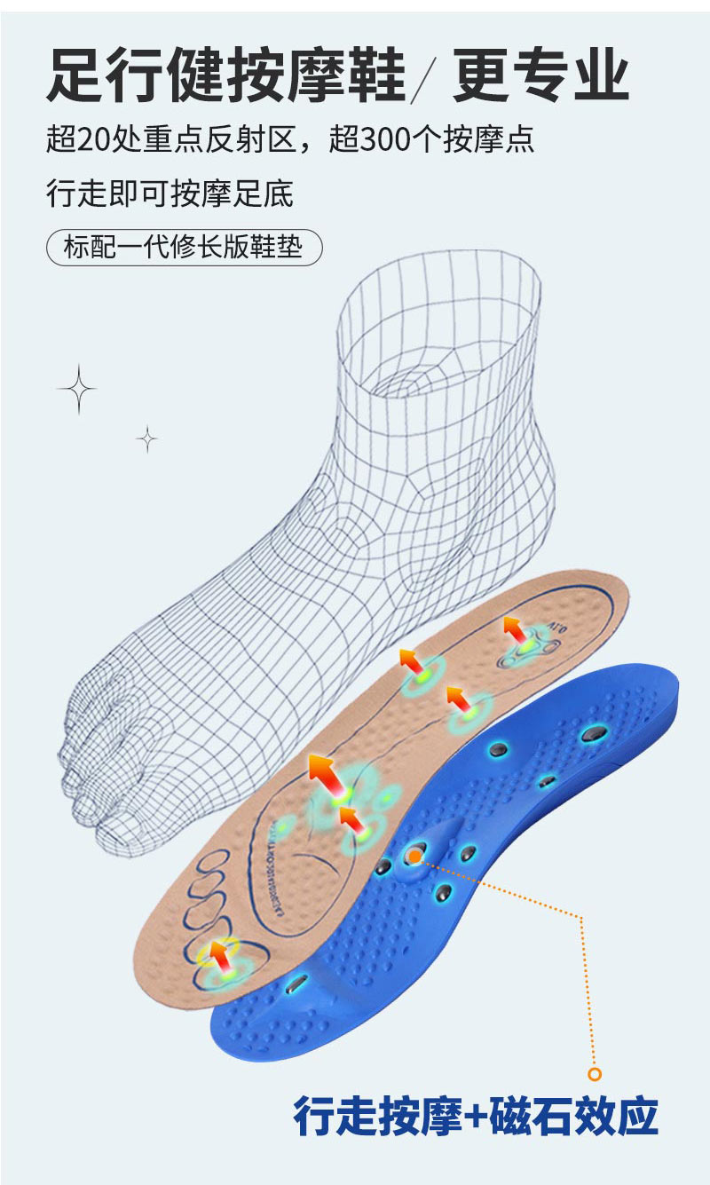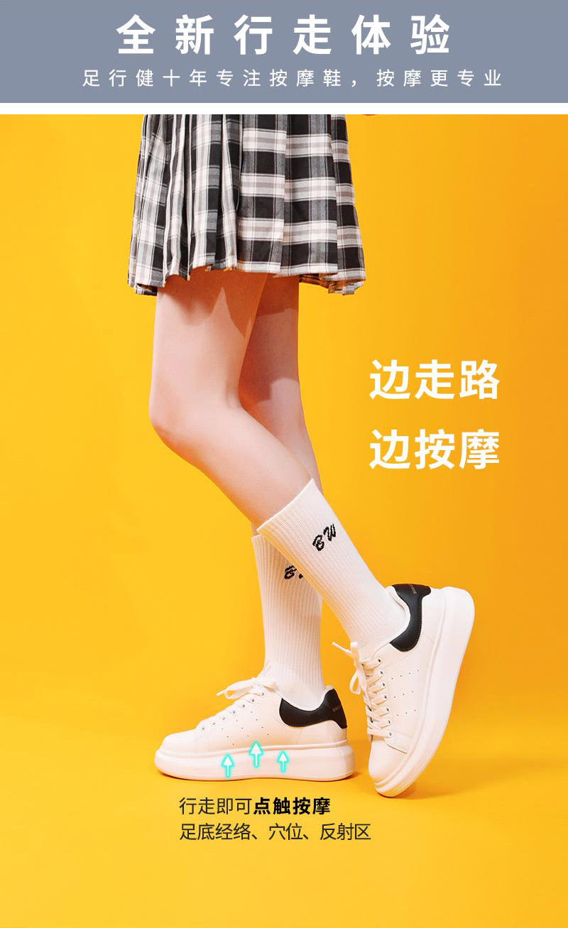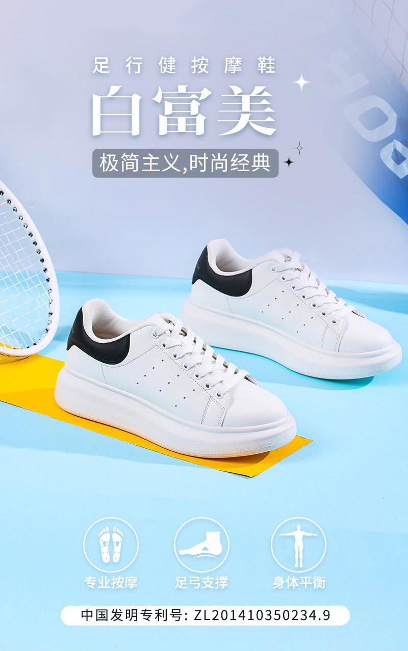 足行健按摩鞋熊猫鞋小白鞋休闲百搭运动女鞋潮流板鞋-白富美