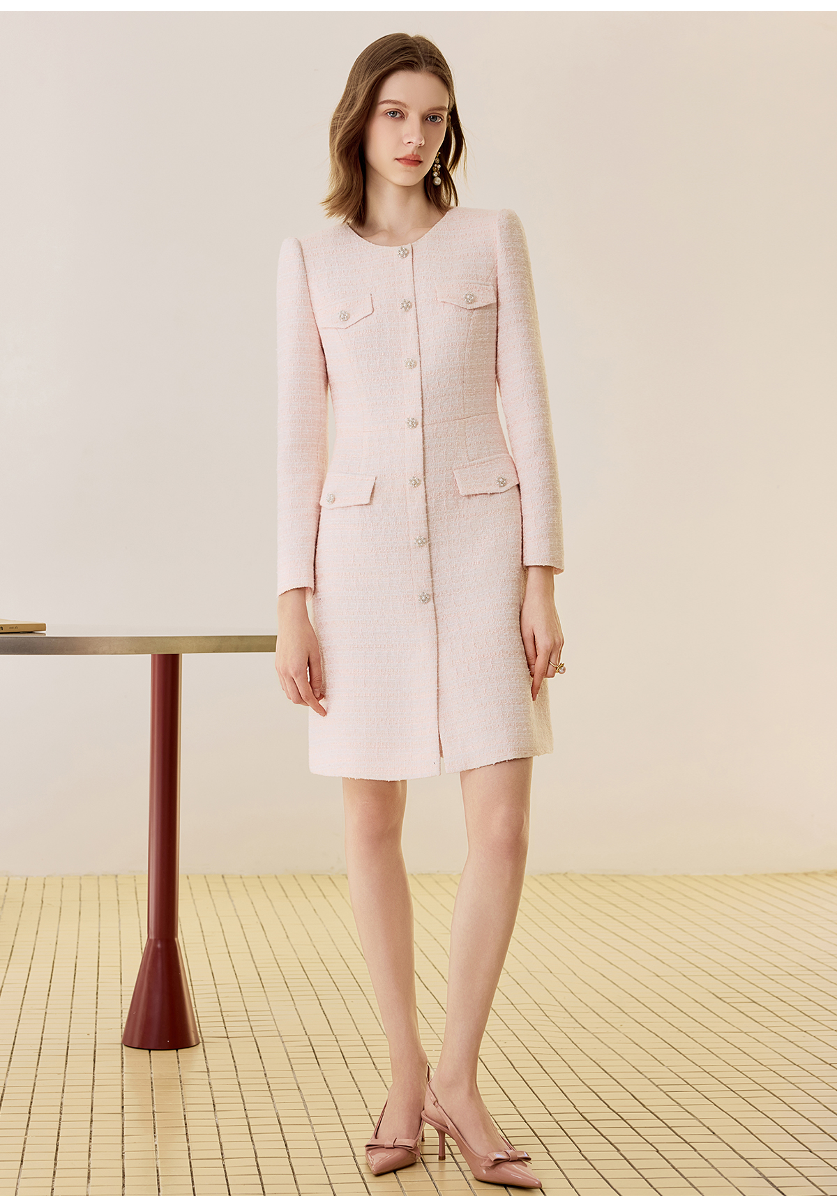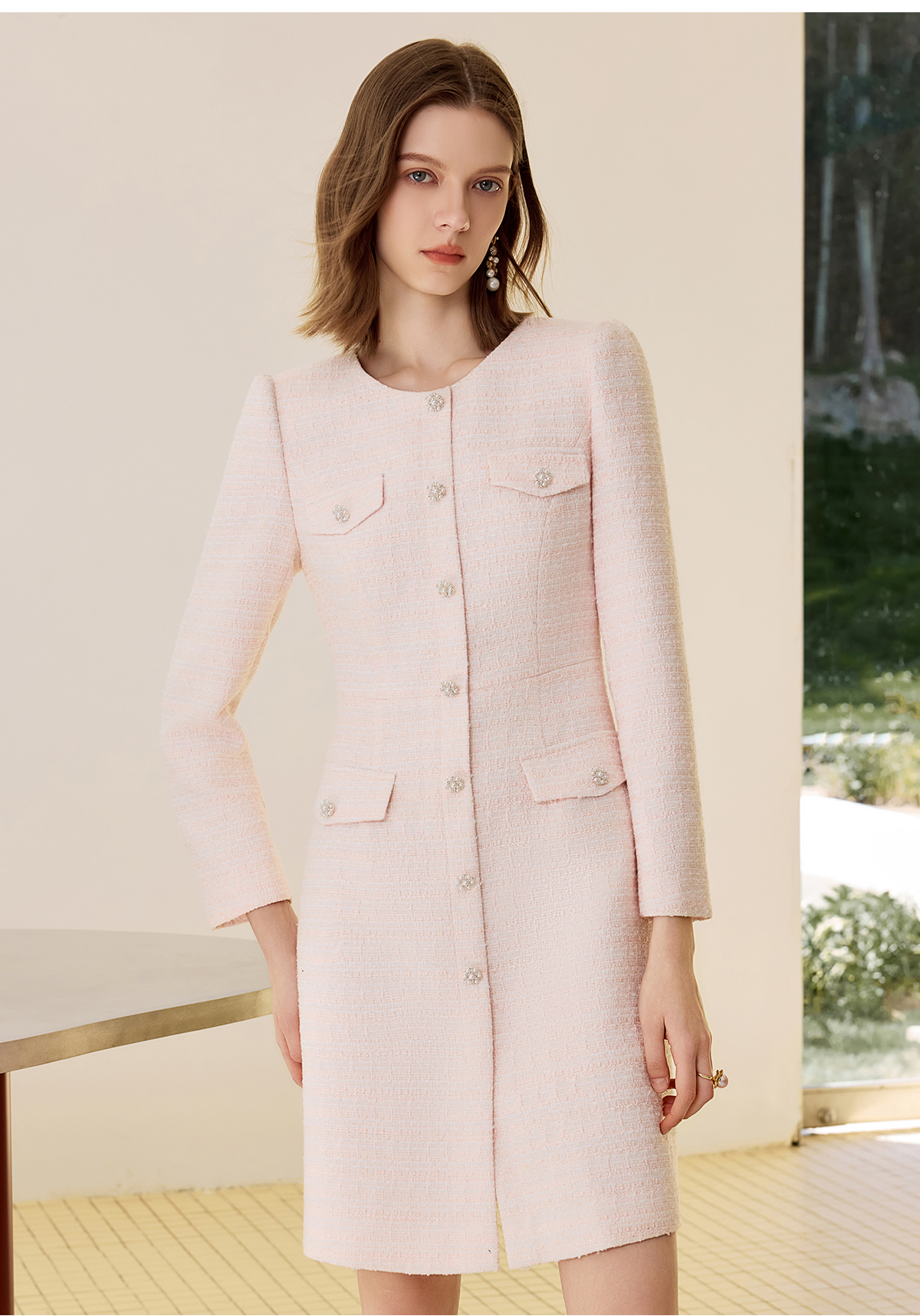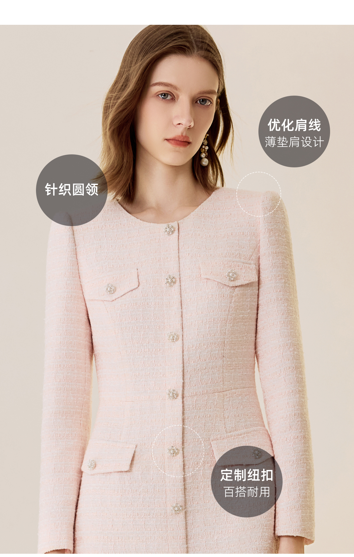 AD法式小香风圆领连衣裙女2025新款气质优雅通勤裙职场面试工作服