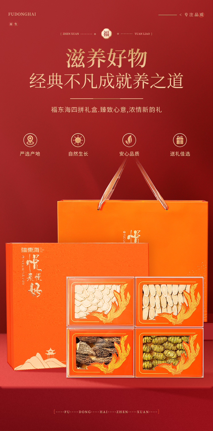 福东海 西洋参铁皮石斛羊肚菌黄芪组合四拼礼盒295克 炖品汤料包滋补品 送礼送长辈礼盒 年货节送礼