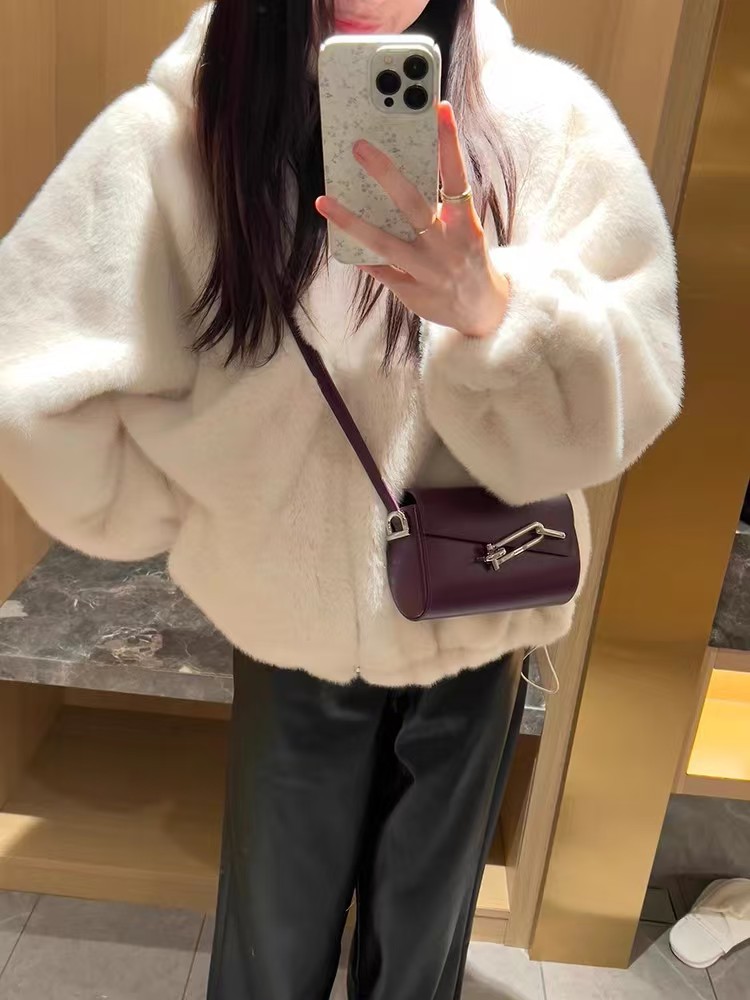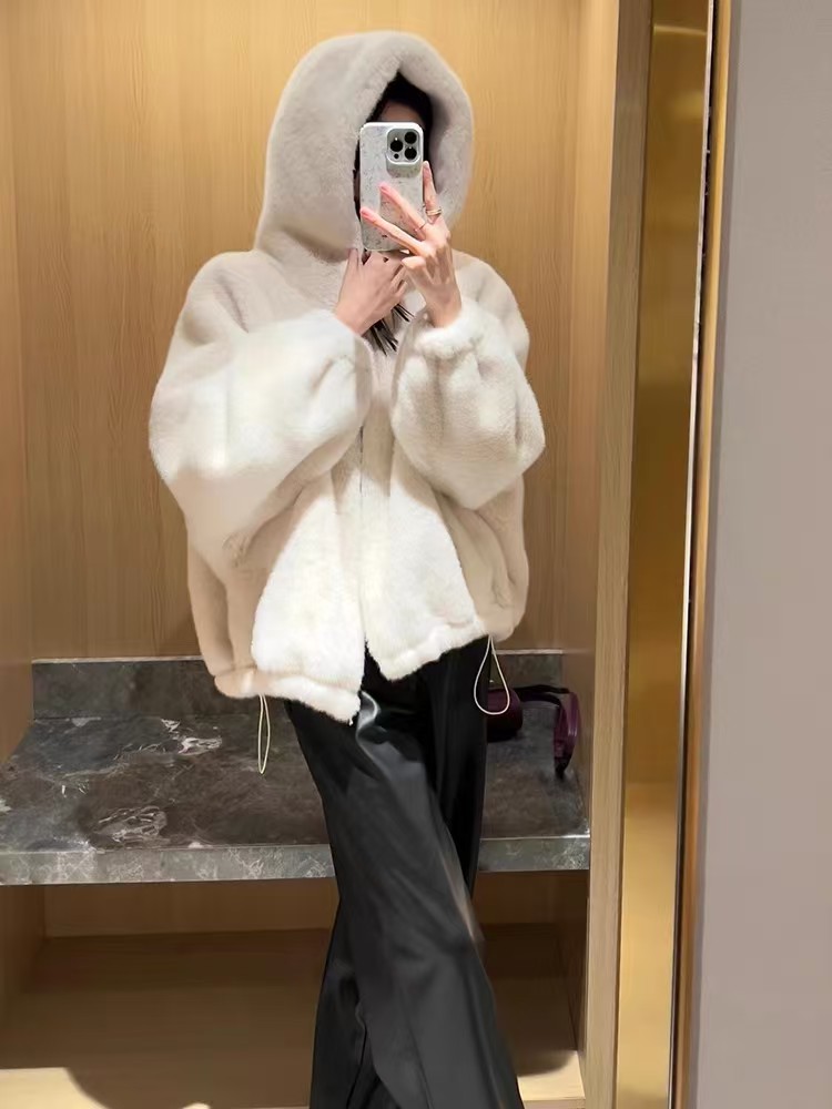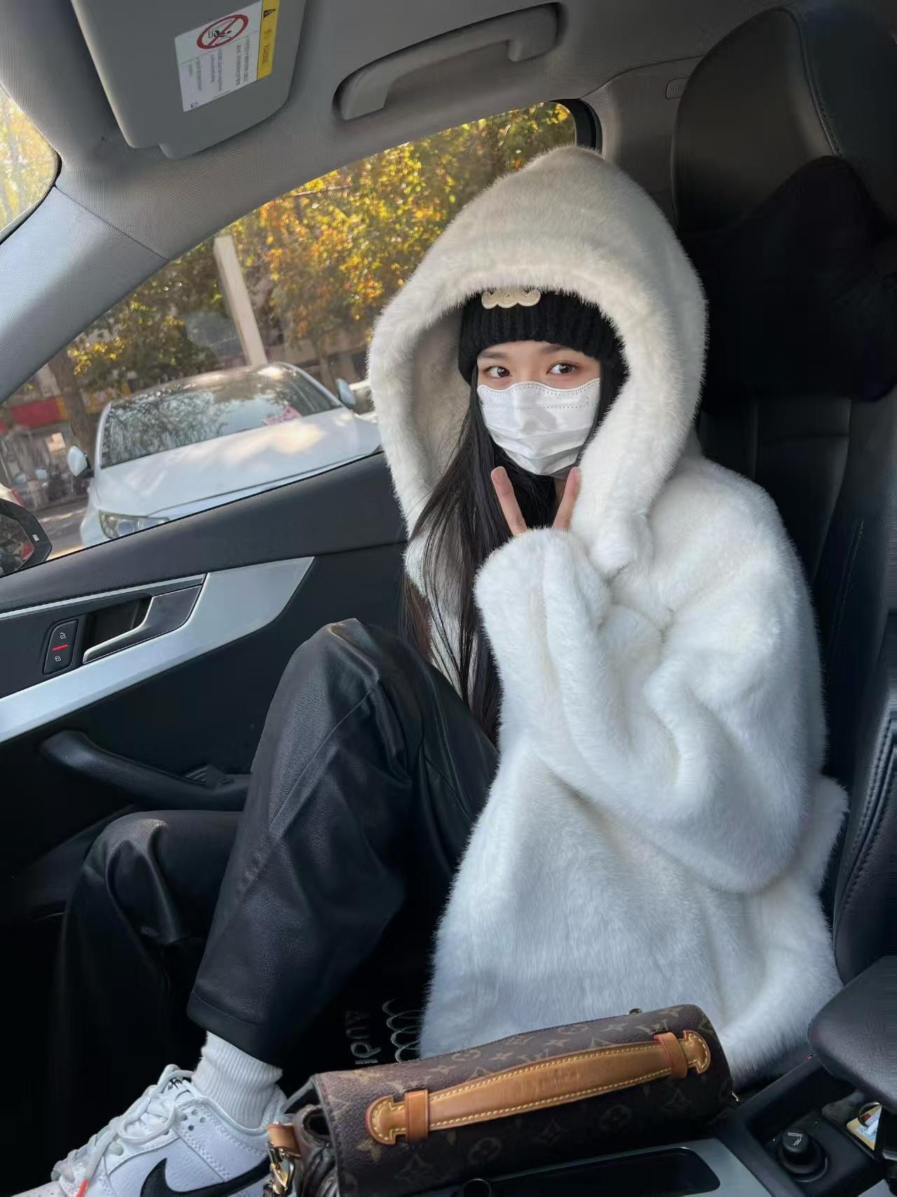 不掉绒,质感超顺滑,毛稍后光泽感,毛绒丰盈高级,丰厚细腻,时髦又抗风!