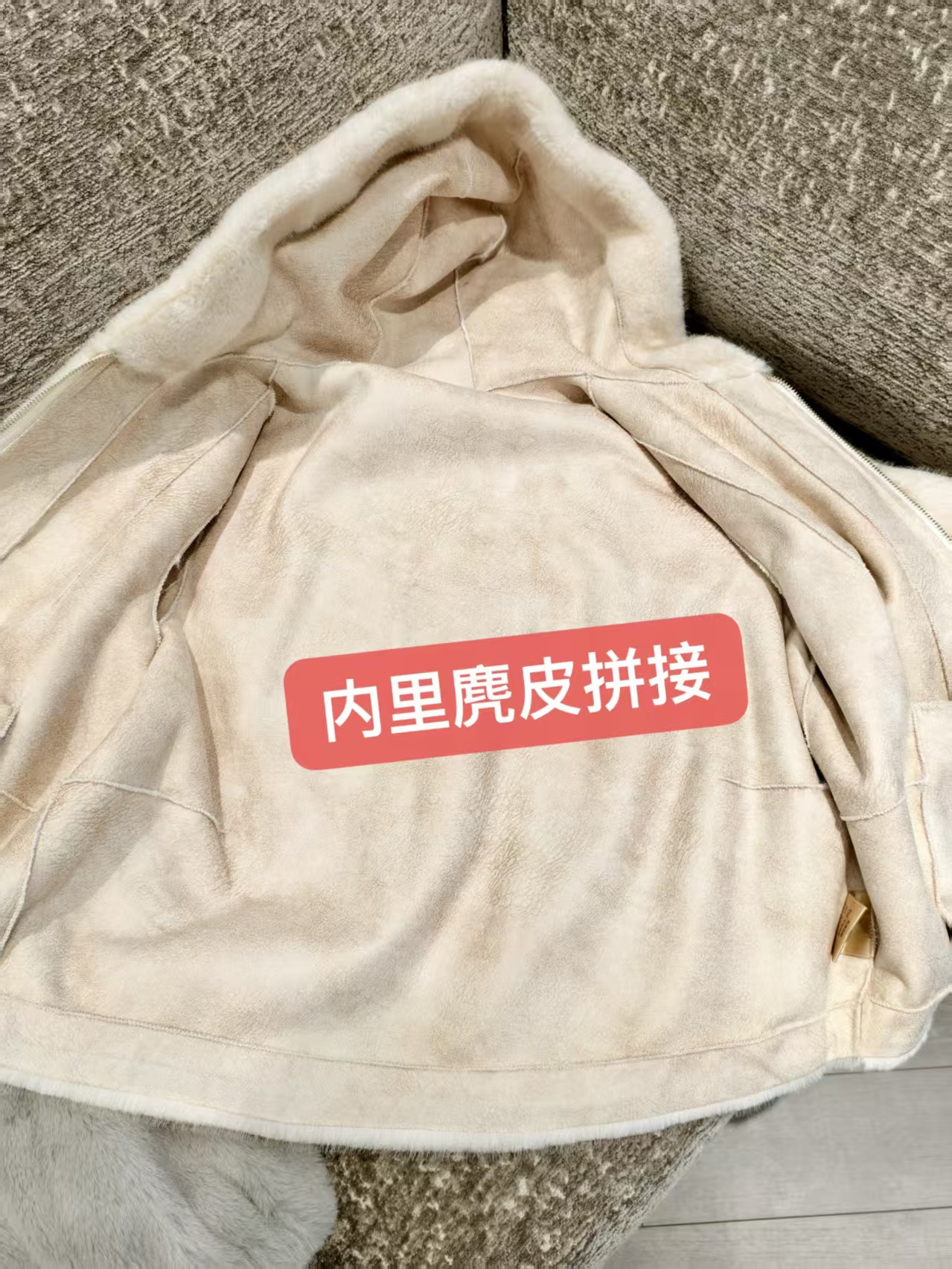 内里麂皮绒,翻过来可以水洗。不起静电。简直就是几万块貂的平替。