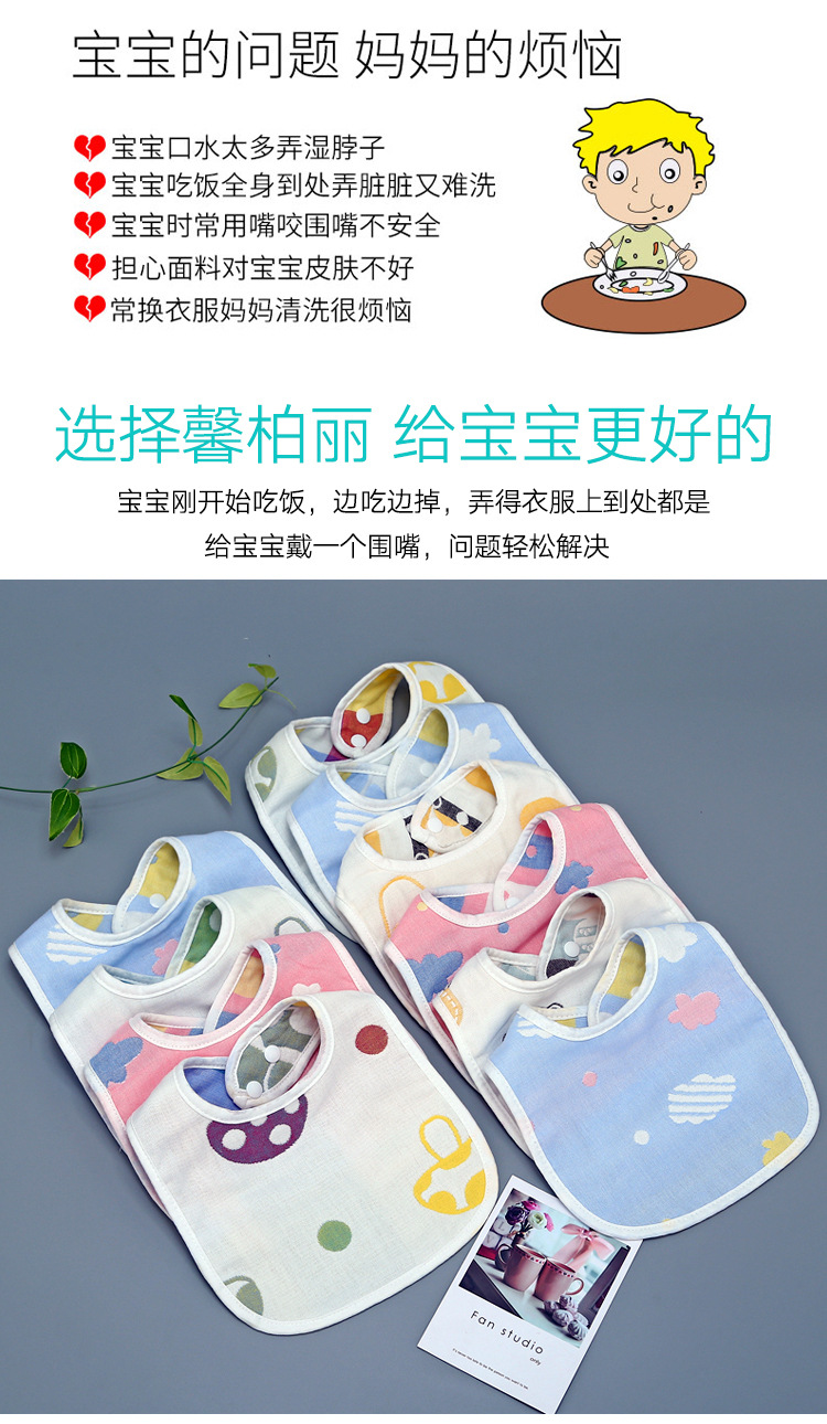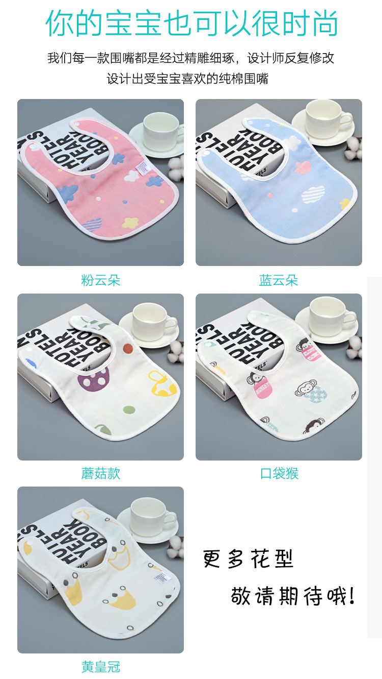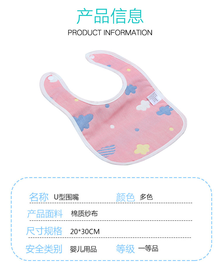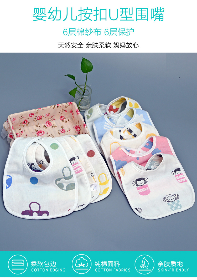 【甄选好棉 3条装】U型围嘴A类六层纯棉婴童幼儿园口水巾围嘴纱布吸水透气轻薄