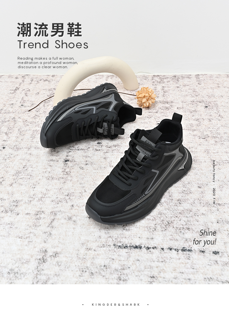 经典鲨2024年冬季新款男士平底系带高帮跑步休闲鞋KW222-D55211