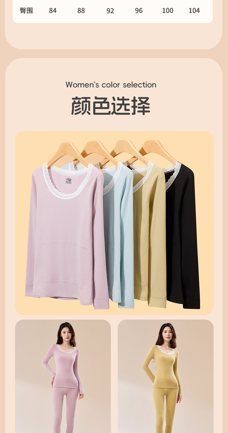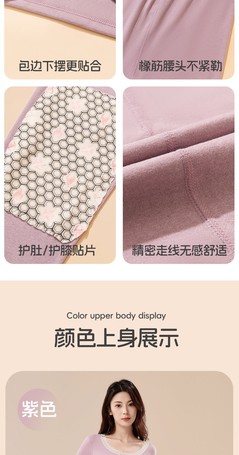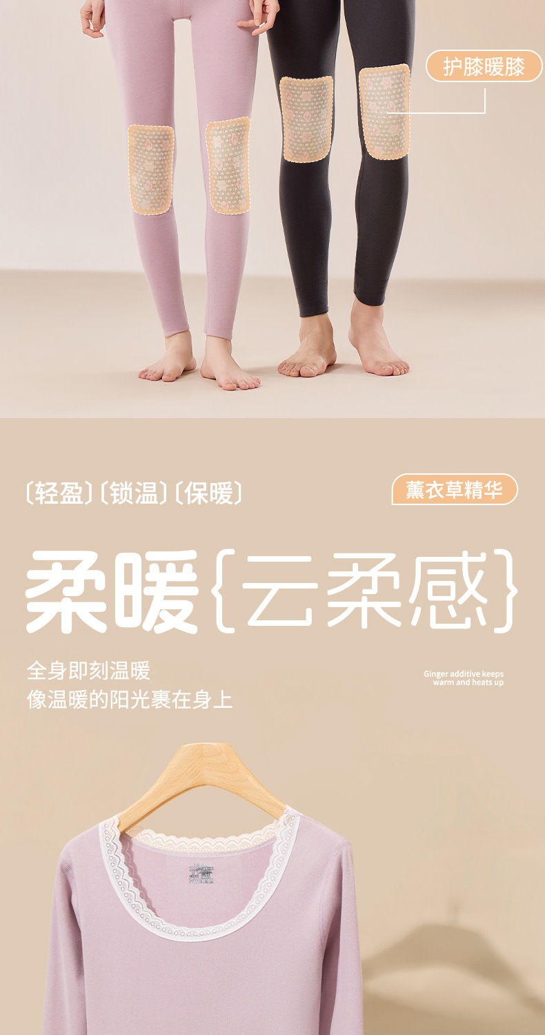 【软糯亲肤❗️10A抗菌保暖内衣套装】薰衣草精华锁温蓄热,护膝贴片,护颈贴片,护颈暖背,暖膝避免老寒腿!秋冬款女士蕾丝花边秋衣秋裤贴片加厚打底衫
