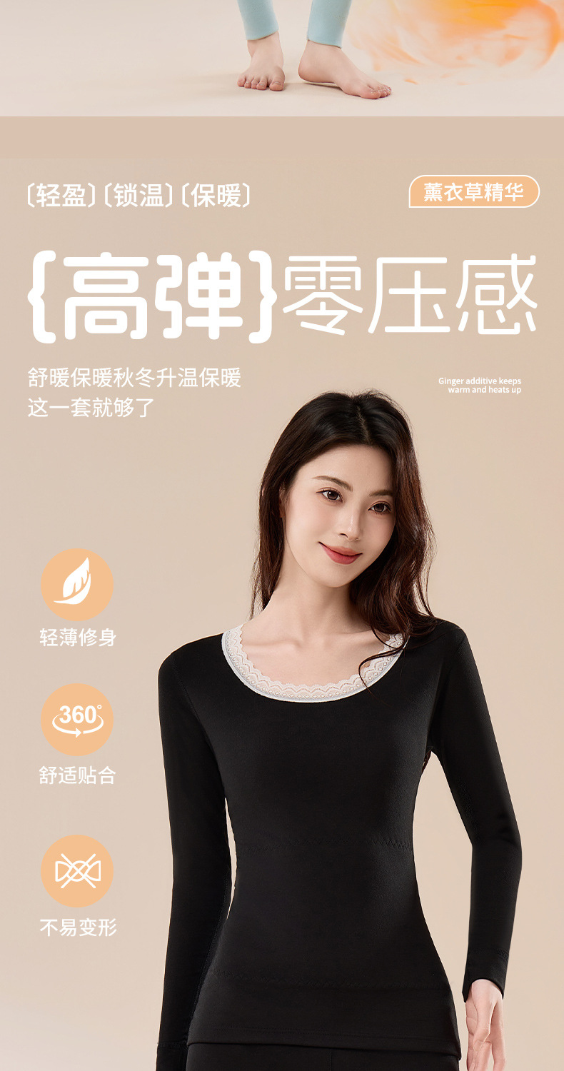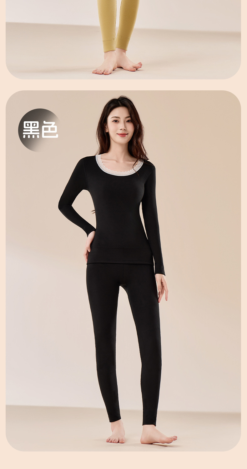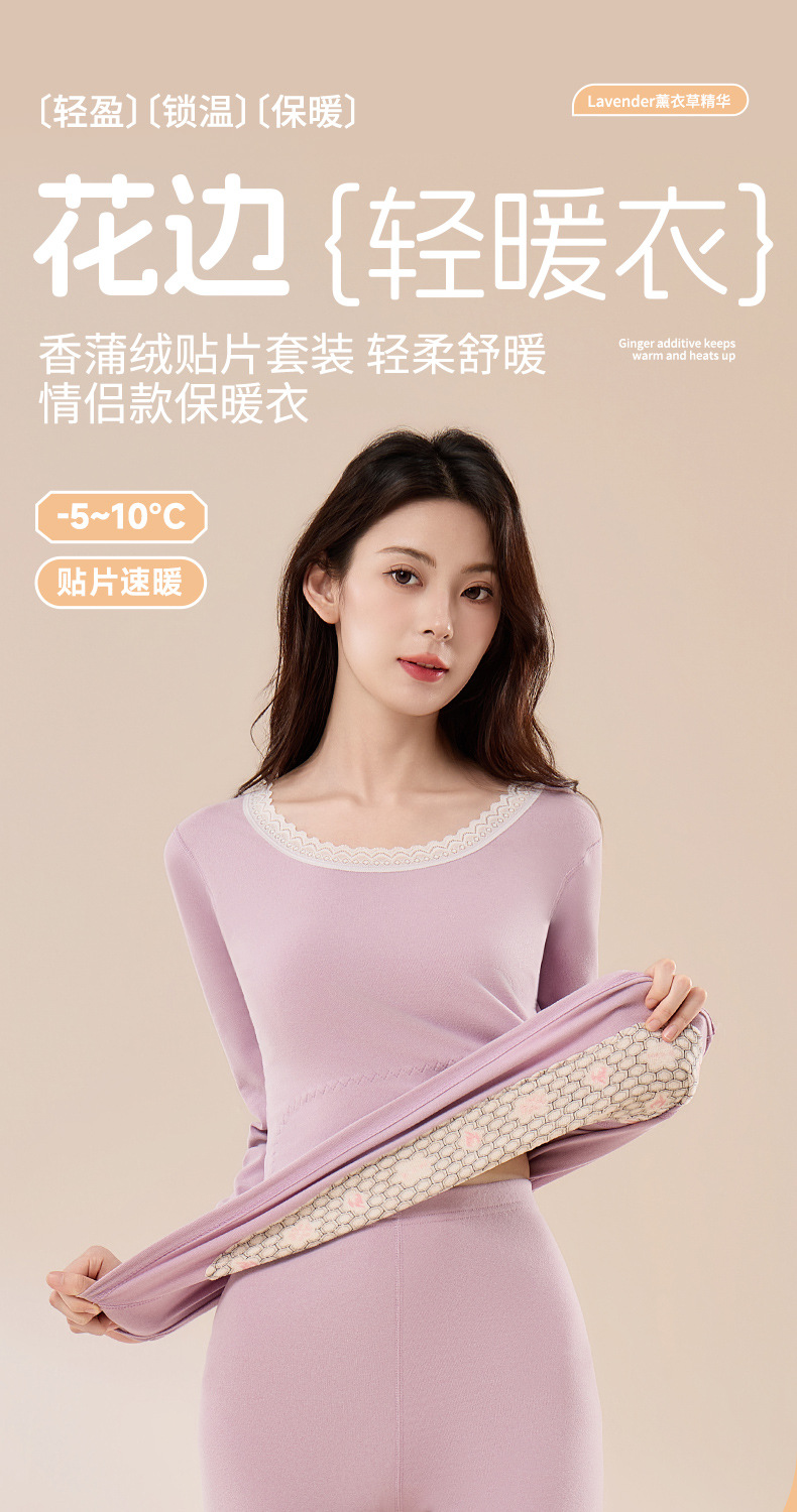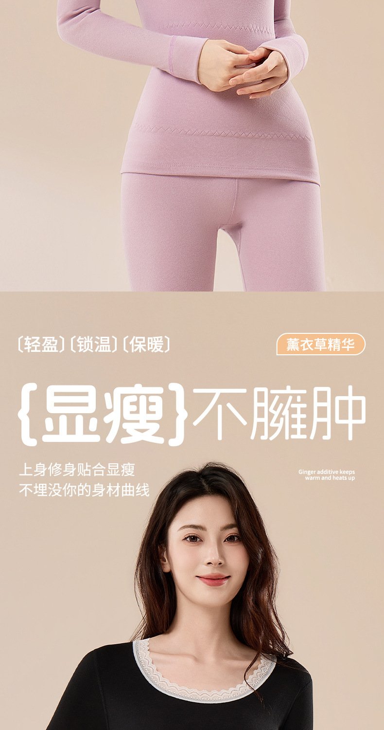 【软糯亲肤❗️10A抗菌保暖内衣套装】薰衣草精华锁温蓄热,护膝贴片,护颈贴片,护颈暖背,暖膝避免老寒腿!秋冬款女士蕾丝花边秋衣秋裤贴片加厚打底衫