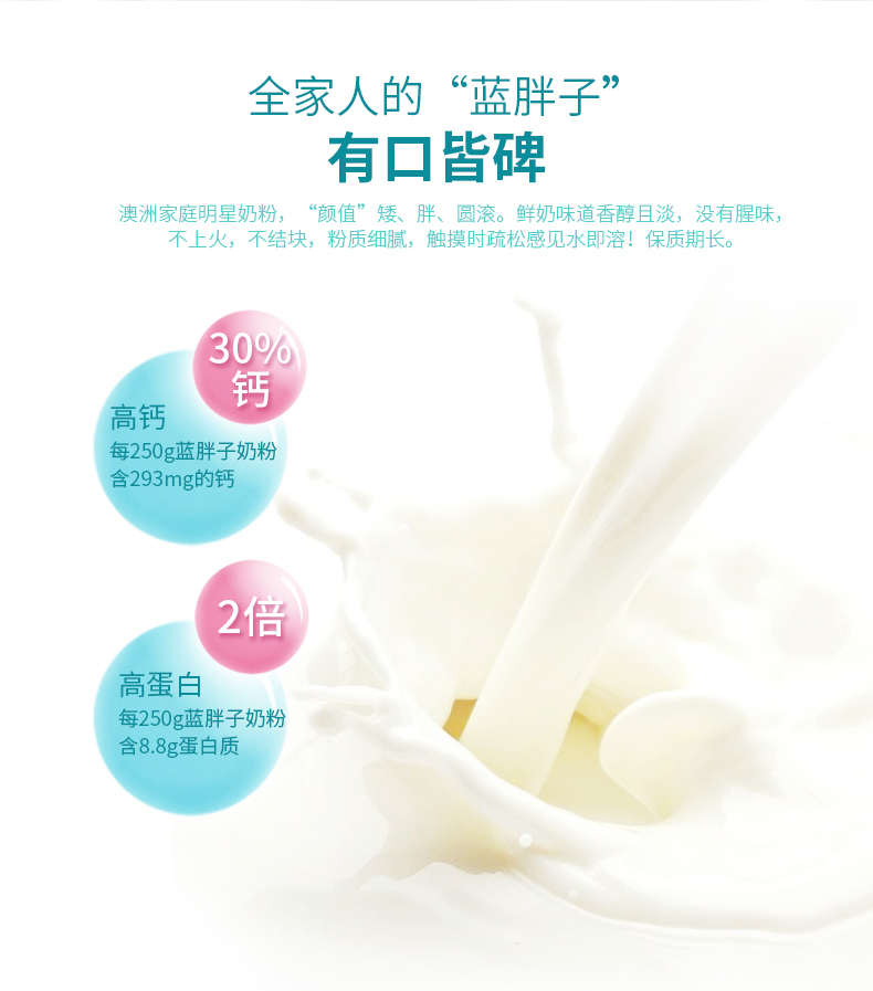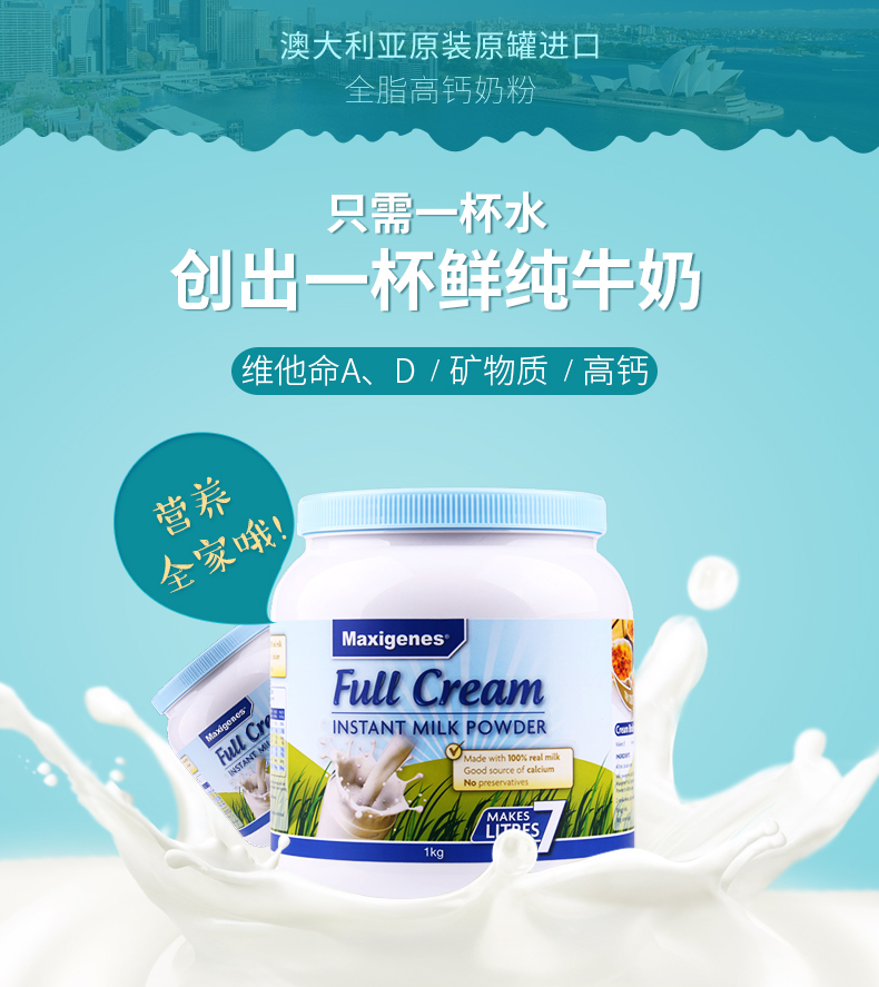 蓝胖子Maxigenes美可卓全脂高钙/蓝妹子脱脂奶粉 1kg