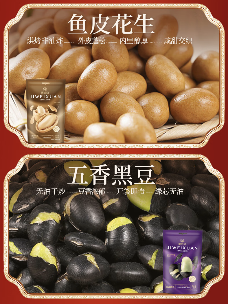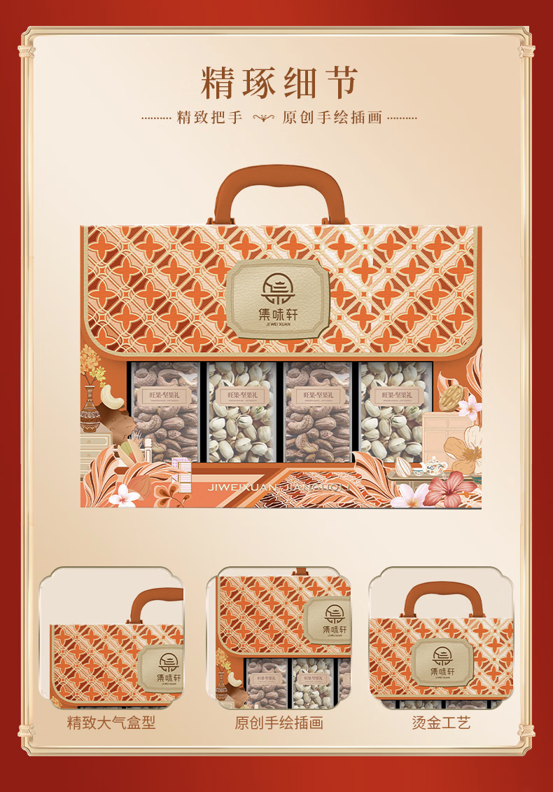 集味轩6罐装坚果礼盒 零食礼包 开心果腰果杏核鱼皮花生五香黑豆提子干 企业集采精致礼1138g