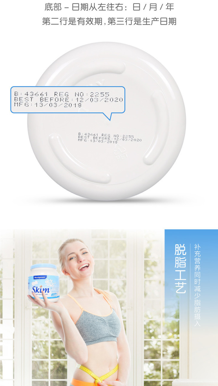 澳洲 Maxigenes美可卓蓝妹子成人脱脂高钙奶粉 1000g营养健康早餐